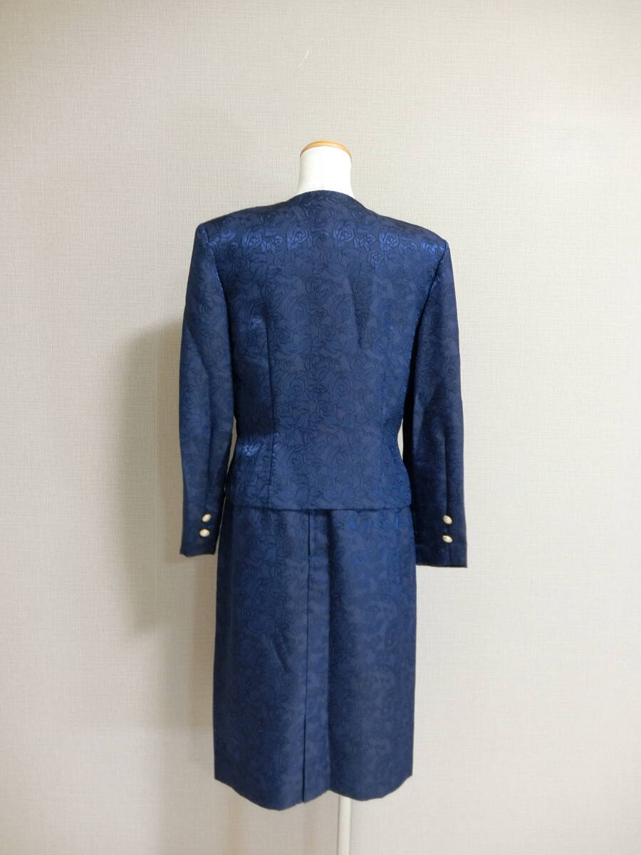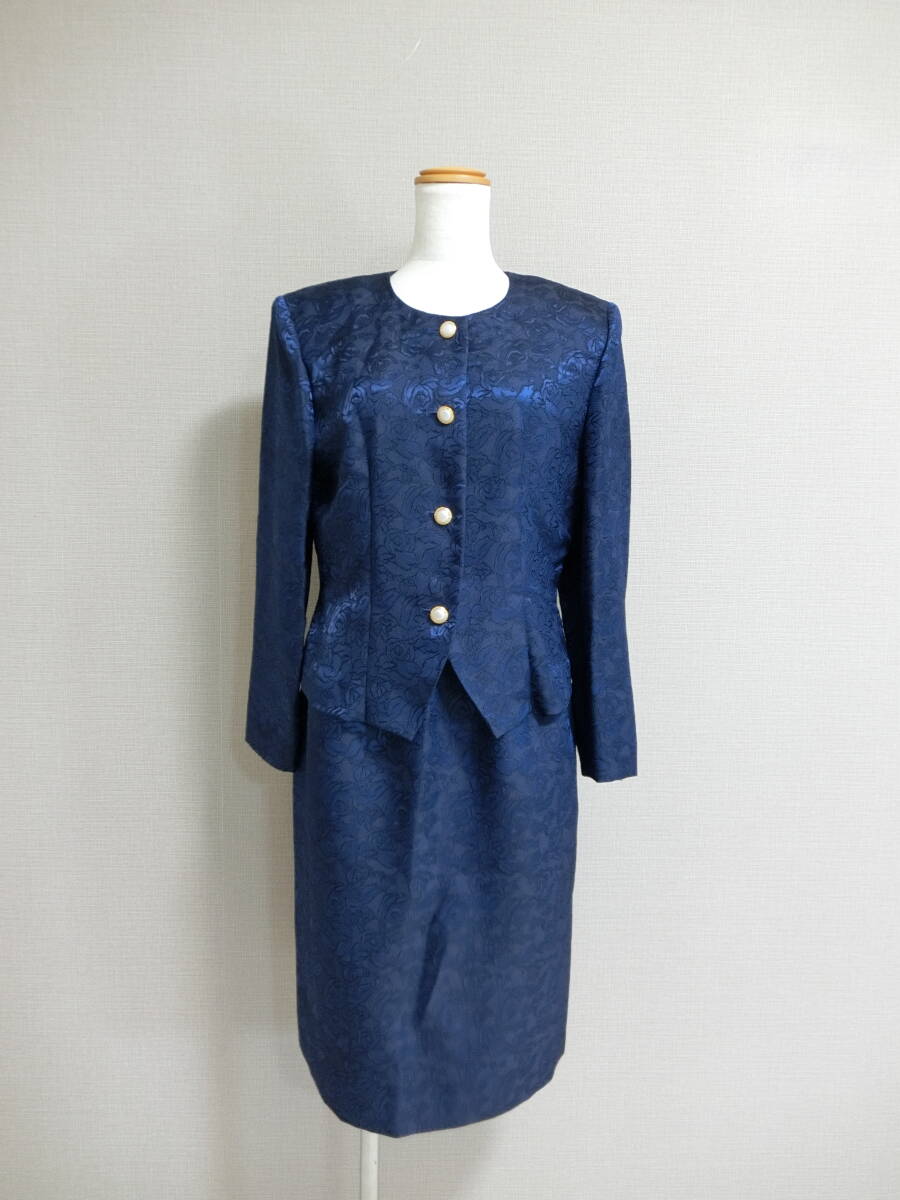 | 極美品 RIFANNE リファンネ 東京ソワール 総柄 ノーカラー スカート セットアップスーツ ネイビー 11 | |
