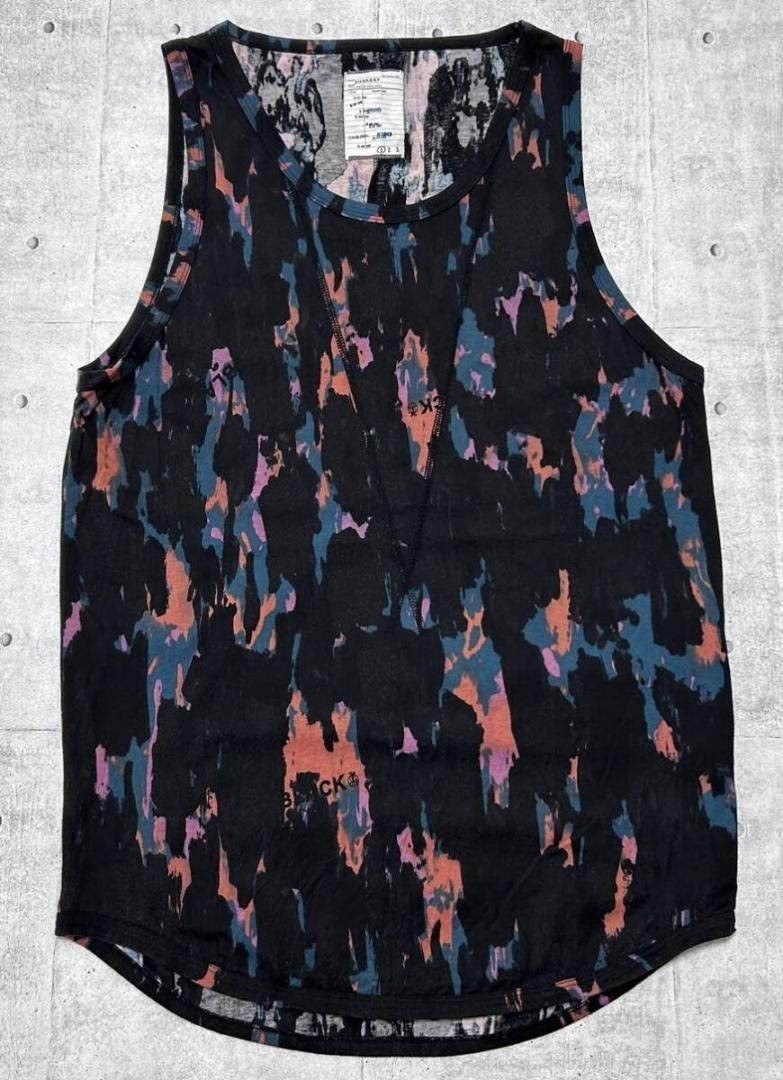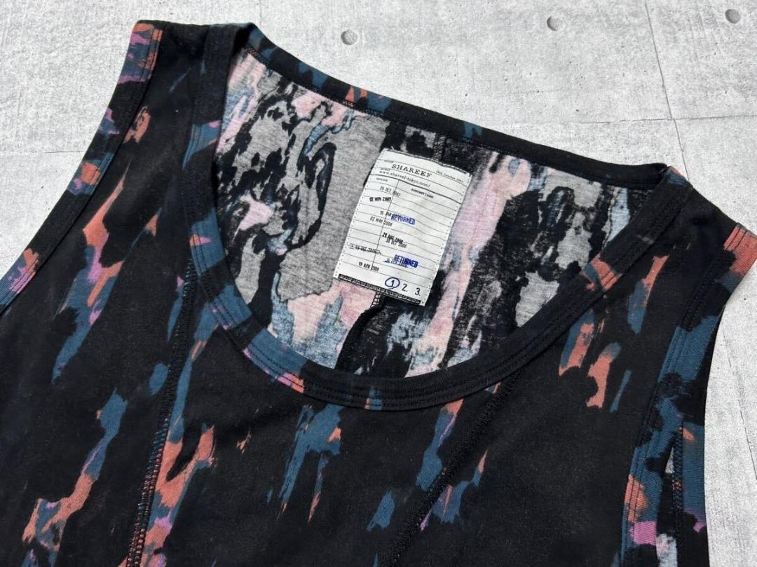 SHAREEF 総柄 タンクトップ 袖なし ノースリーブ BLACK ロゴ ボーダー シャリーフ 日本製 ハイクオリティー ストリート 玉9637