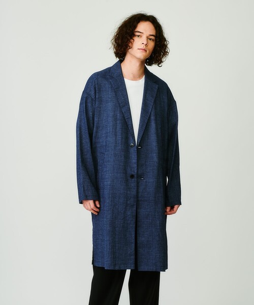 美品 tk.TAKEO KIKUCHI ベルギー リネン 麻 チェスター コート ティーケー タケオキクチ s サイズ ブルー 青 ネイビー 紺 色 無地 春夏