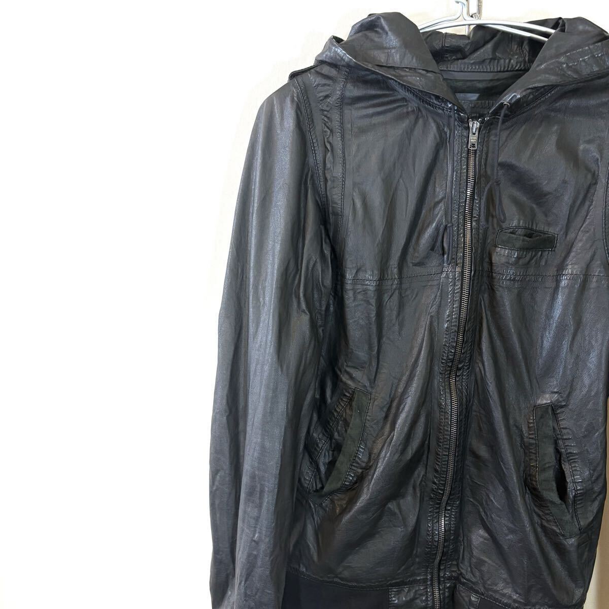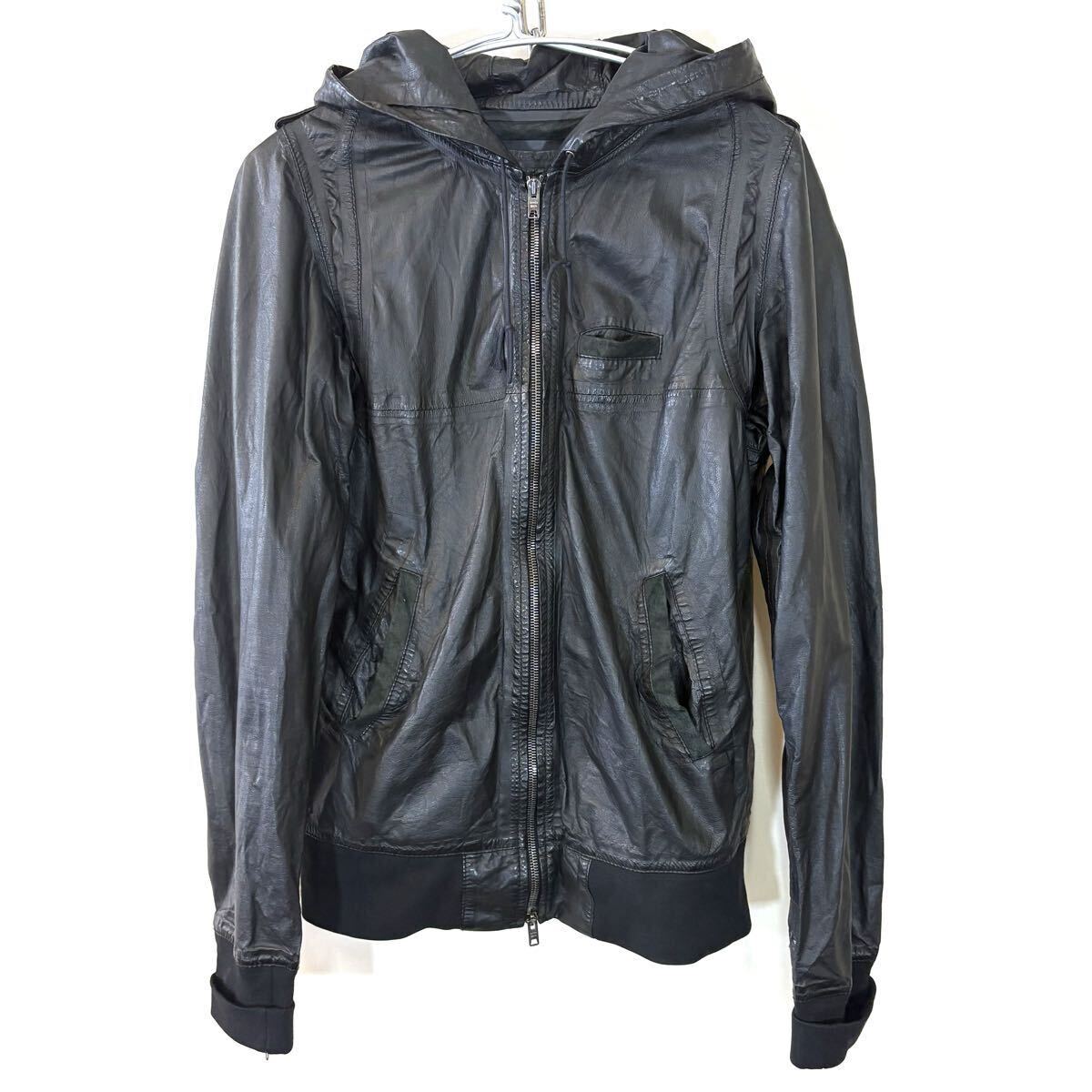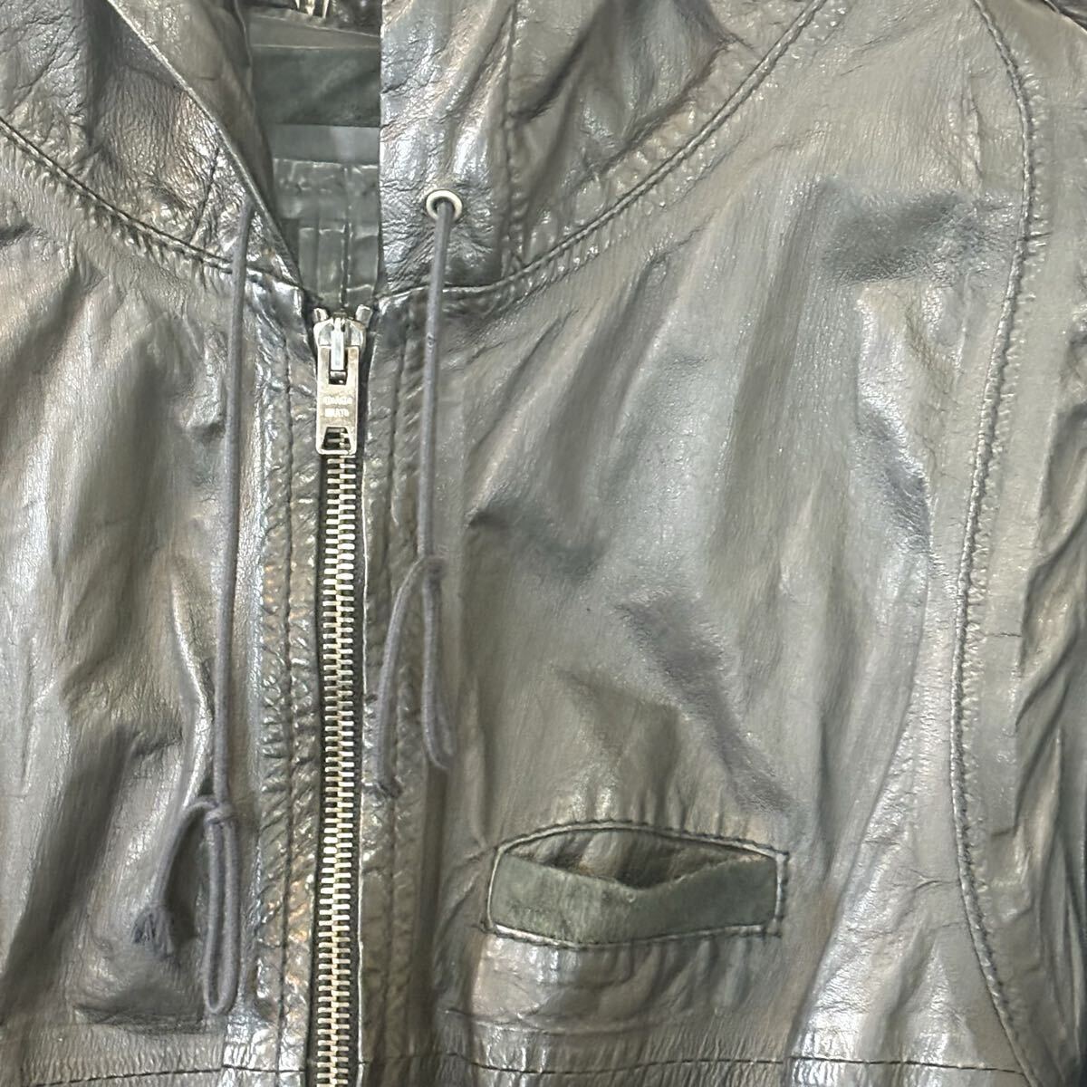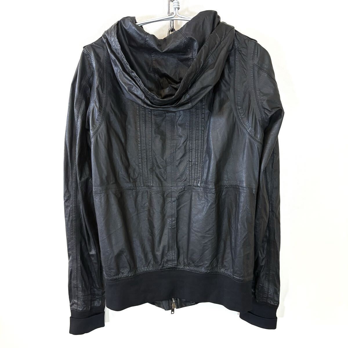 GIORGIO BRATO ジョルジオブラット ライダースジャケット レザージャケット フーディジャケット 薄手レザー ブラック ラムスキンsize:46