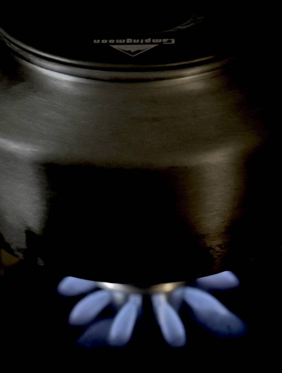 アルコール20mlで400mlの水(水温約20℃)を沸騰(100℃)までの時間は5分10秒でした。(キャンピングムーンのケトル使用)写真を見てください!
