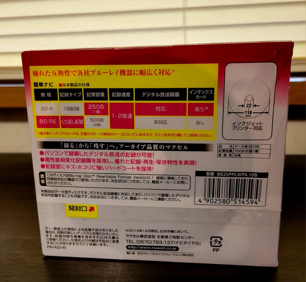 ★ BD-RE 25GB PLAIN STYLE 1〜2倍速対応 インクジェットプリンター対応です。