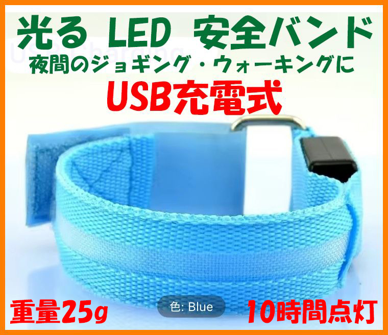 光る LED 軽量 安全バンド(ブルー)USB充電式です。