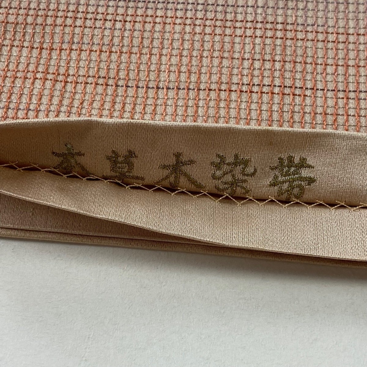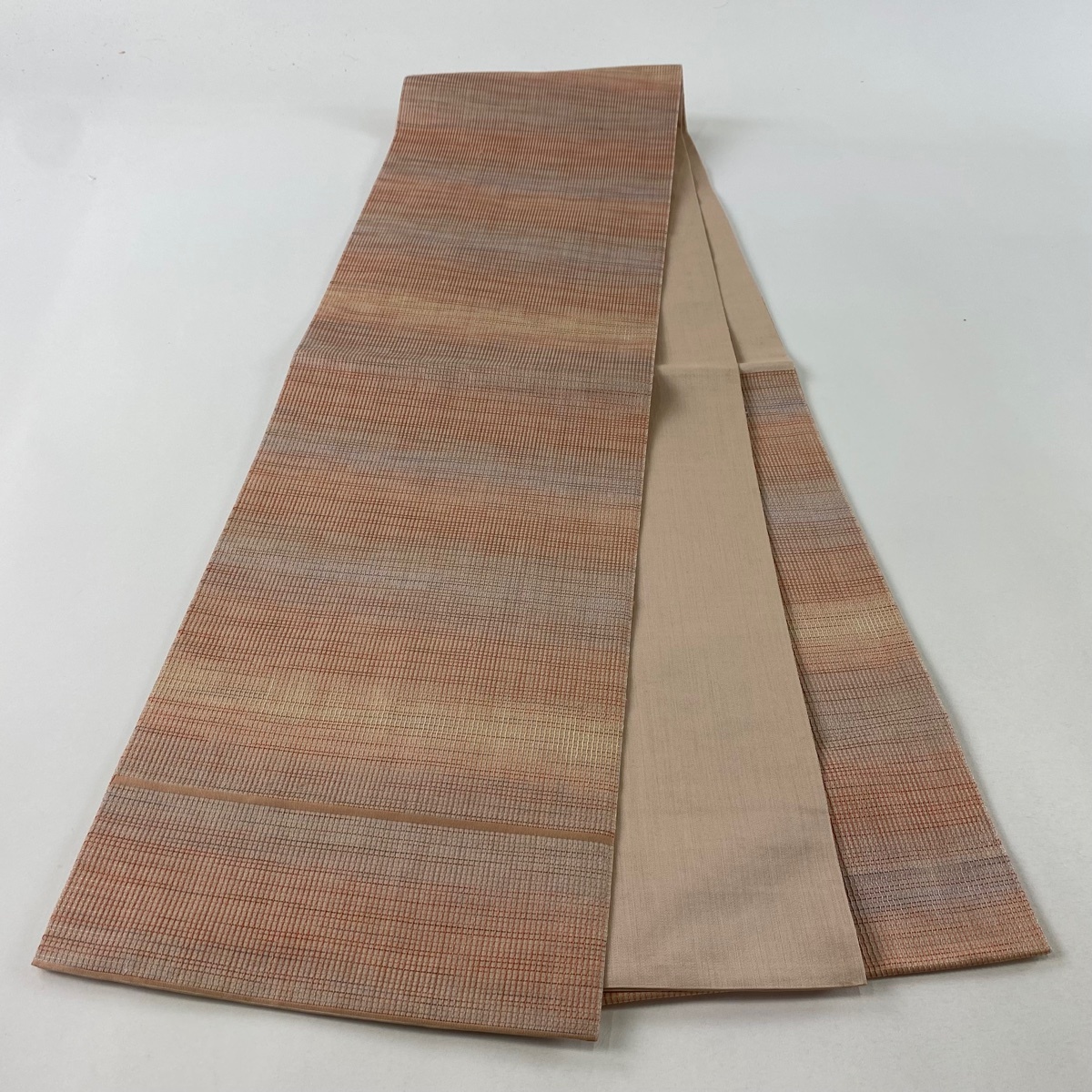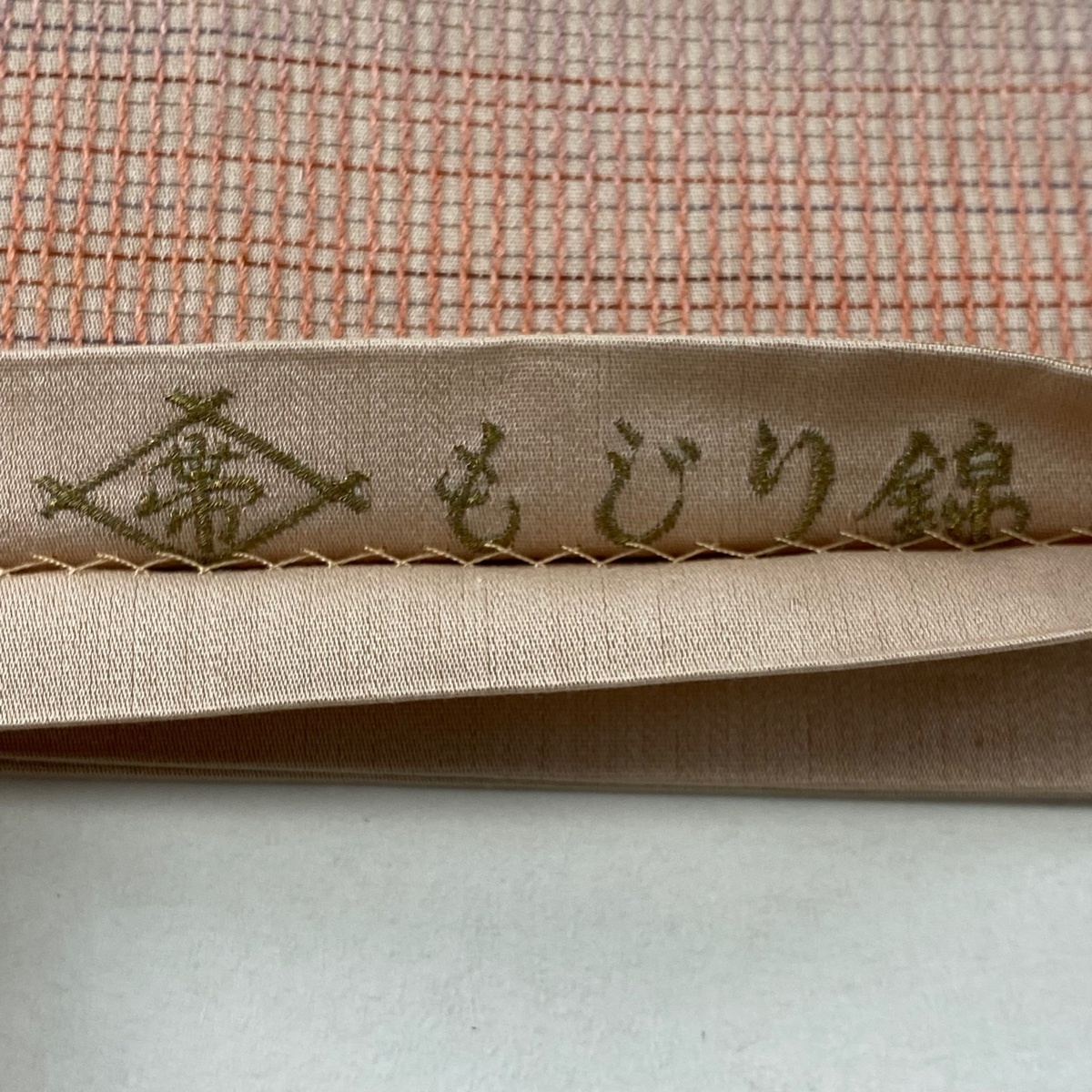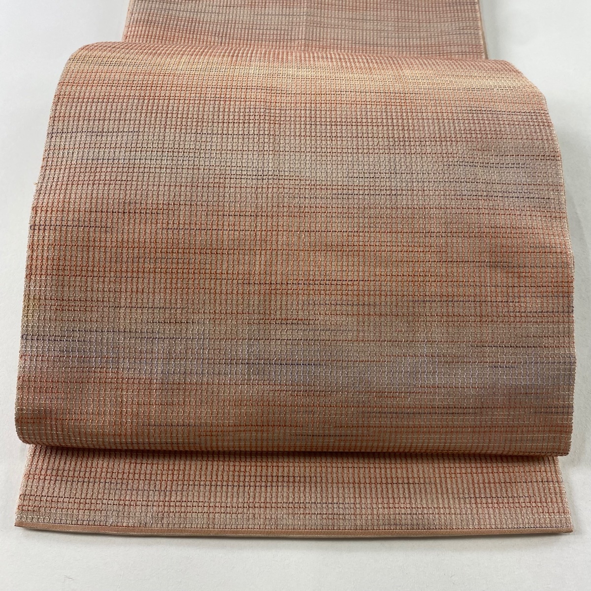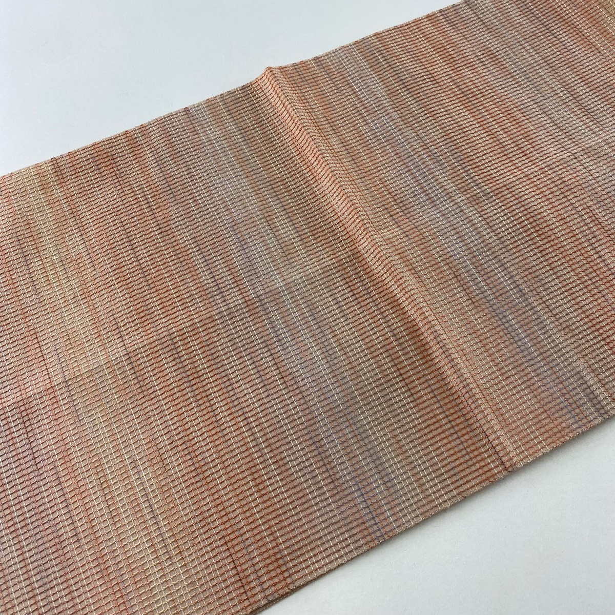 | 袋帯 秀品 本草木染帯 もじり錦 格子柄 サーモンピンク 六通 正絹 【中古】 |