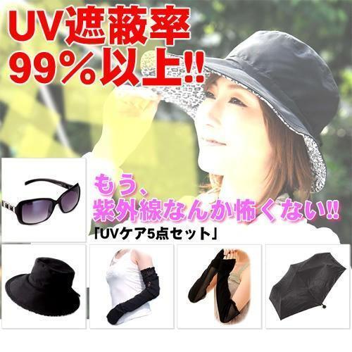 晴雨兼用折りたたみ傘 サングラス リボンハット アームカバーロング アームカバーミドル UVケア レディース 5点セット