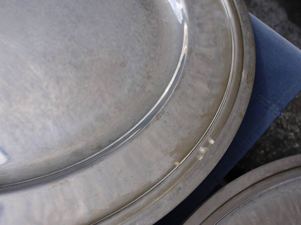 商品明細 和田助製作所 SW ステンレス製 丸皿 大皿 直径約41㎝ 3枚 重量感のある皿 1枚の重さ 1.2~1.5kg 重さ1枚の重さ 1.2~1.5kg 清掃も含め 落札者様にてメンテナンス願います。 デジカメ画像ため 実際の商品との色の誤差はご容赦願います。 写真掲載以外にも、中古品のため 傷、汚れなどありますこと了解願います。 オリジナリティにつきまして過去の履歴もわらず不明です、画像等をよくご参照頂ければ幸いです。 ご不明な点は、入札前に質問欄にてご質問下さいませ。 ノークレーム、ノーリターンをご理解いただき 入札願います。