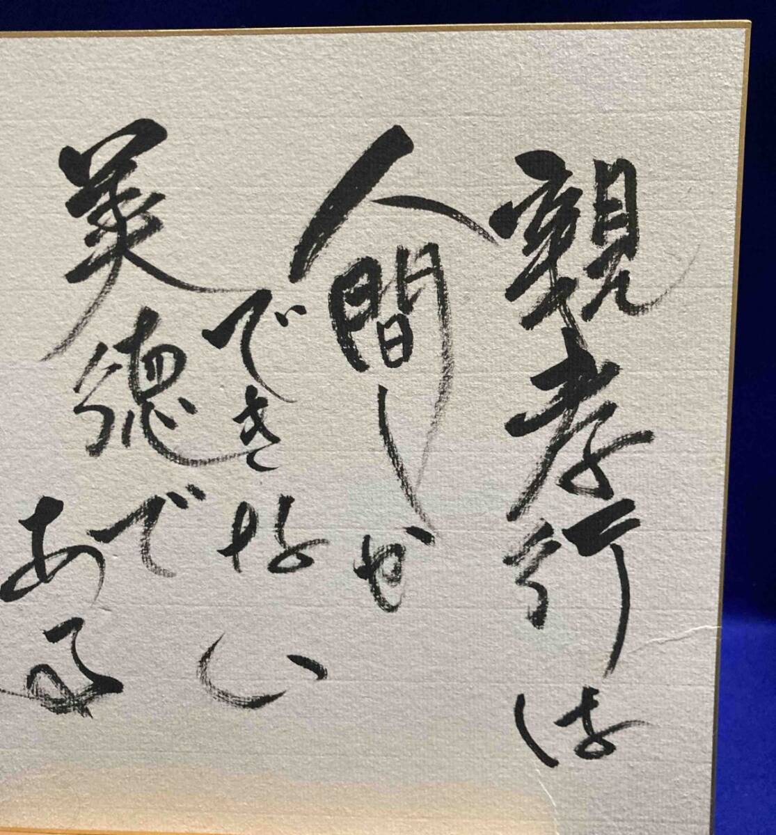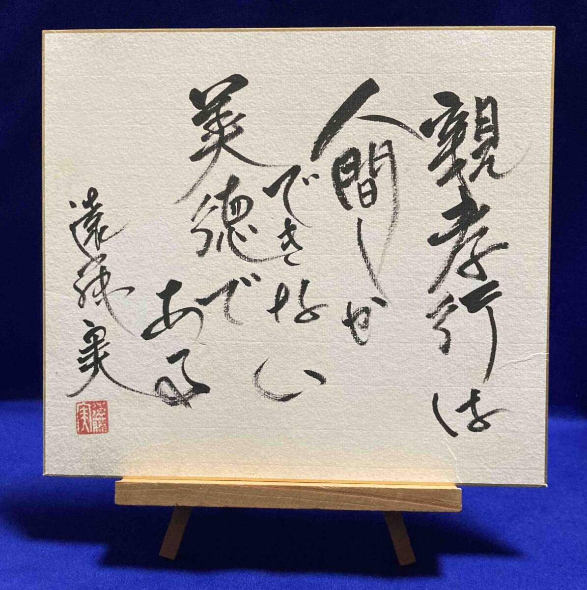 真贋補償◆遠藤実 直筆色紙◆親孝行は人間しかできない美徳である/Y284