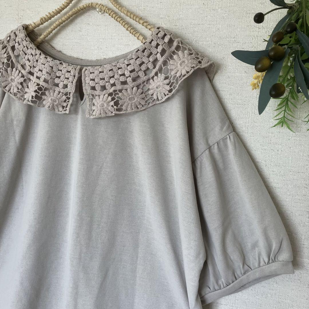 新品★サマンサモスモス★sm2★お花レース*襟パーツレース付カットソー*前後着2way*着回し力抜群