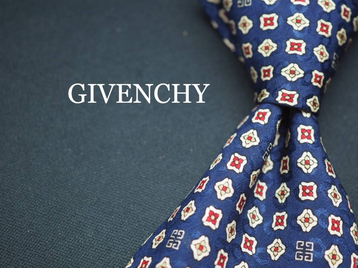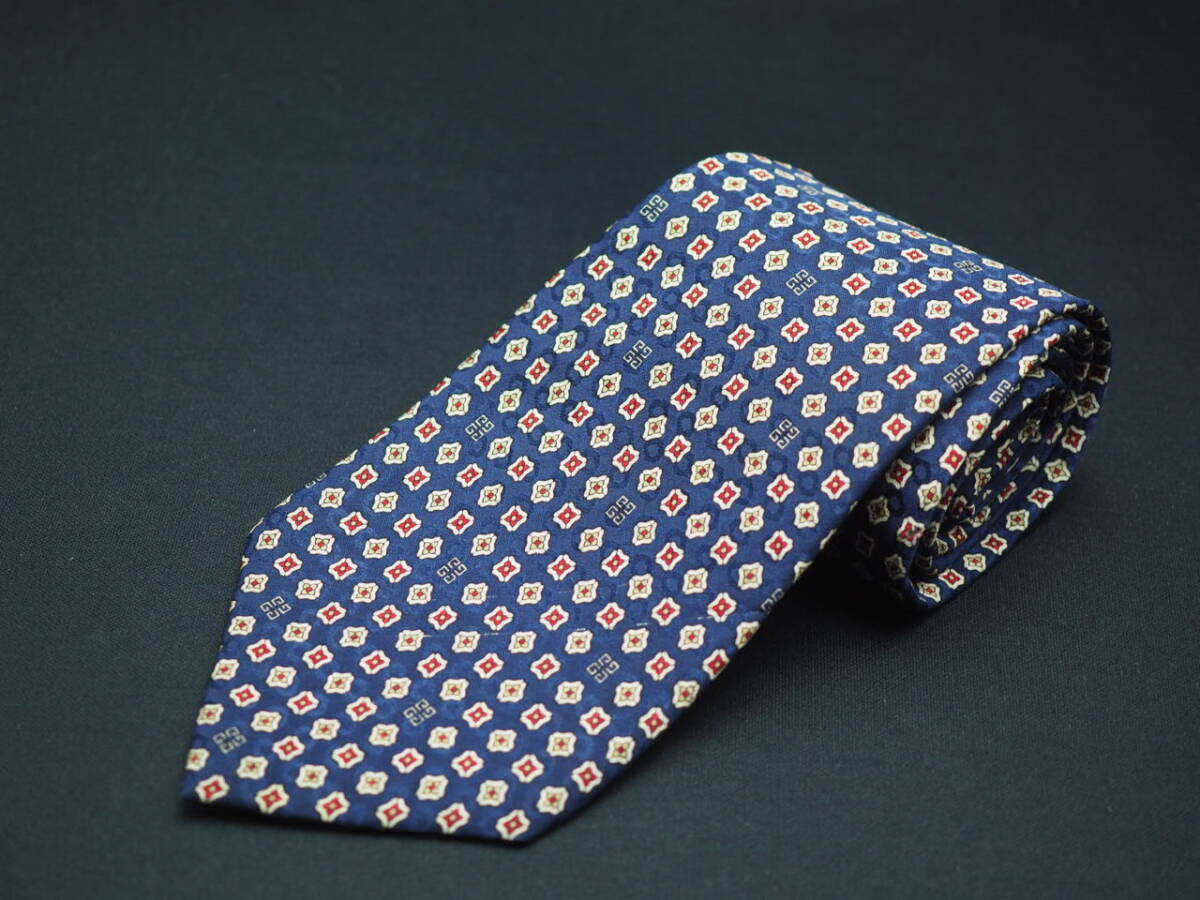 美品【GIVENCHY ジバンシイ】 F1364 ロゴ ネイビー系 SILK ブランド ネクタイ 古着 良品