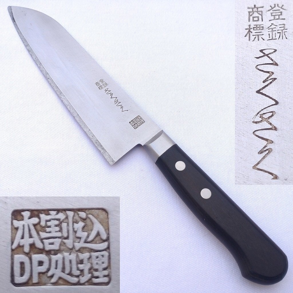 万能包丁 さくさく 本割込 DP処理 刃長約140㎜ 両刃 鍔付 洋包丁 三徳包丁 調理器具 庖丁 刃物 日本製 【2566】