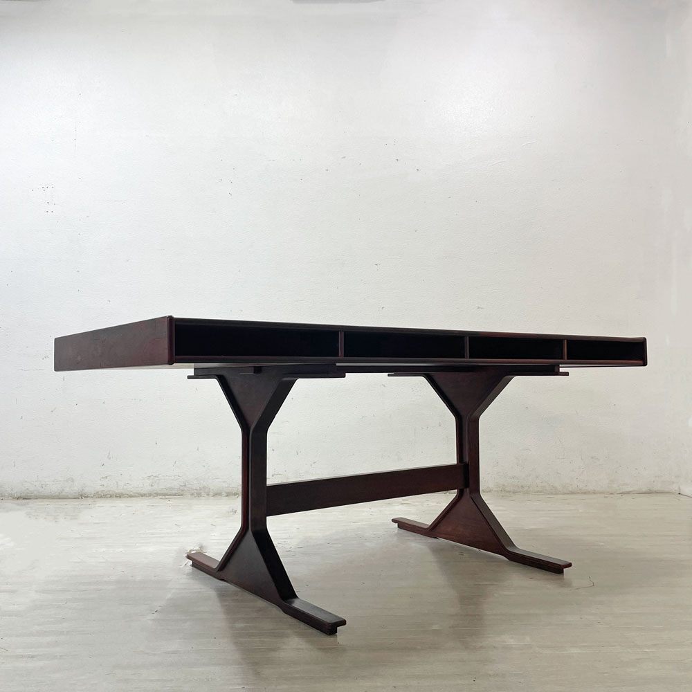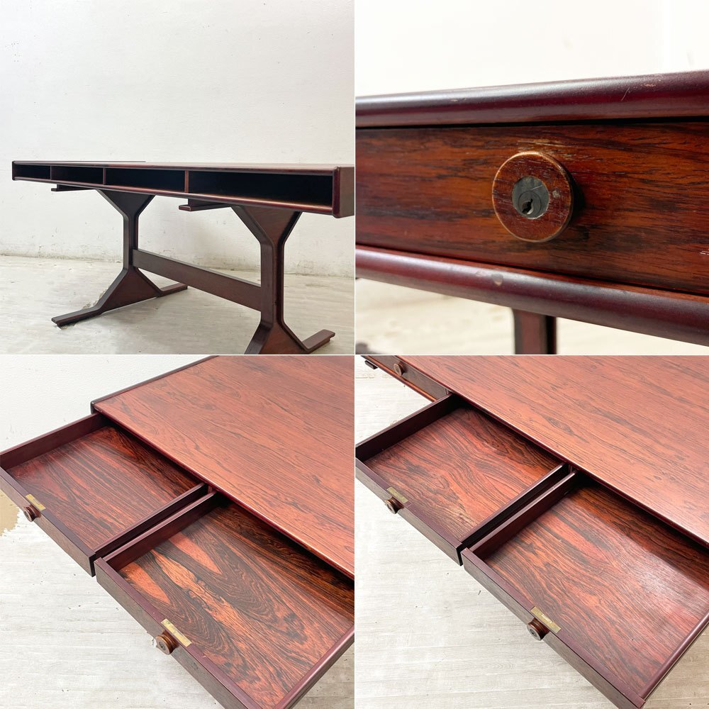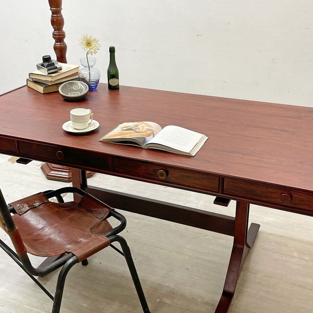 | コメント | イタリアの最高級家具ブランド“ ベルニーニ / BERNINI ”より『 Model530 ローズウッド ライティングデスク 』の出品です。 戦後のイタリアデザインを代表する建築家兼デザイナー" ジャンフランコ・フラッティーニ|Gianfranco Frattini "によりデザインされた同社を代表する大型デスクです。 前後で抽斗収納とオープン収納を装備した機能的な構造で、空間中央への設置にお勧めです。 幅170×奥行63.5cmの広々としたサイズ感は、PC作業や書類を広げた本格的なデスクワークに最適です。 フレームには家具材の中でも最高級木材として知られているローズウッド材を使用。独特の赤みと深みがあります。非常に硬く加工が難しい事から、熟練職人の技術が問われる木材です。 こちらは、70年代に国内でライセンス製造を行っていた時期のものになります。非常にエレガントで存在感があり素敵なワークデスクとなります。 ※当ショップは、主にリサイクル品を取り扱っております。基本的にUSED品である事をご理解頂き、ご入札をご検討下さいませ。 |