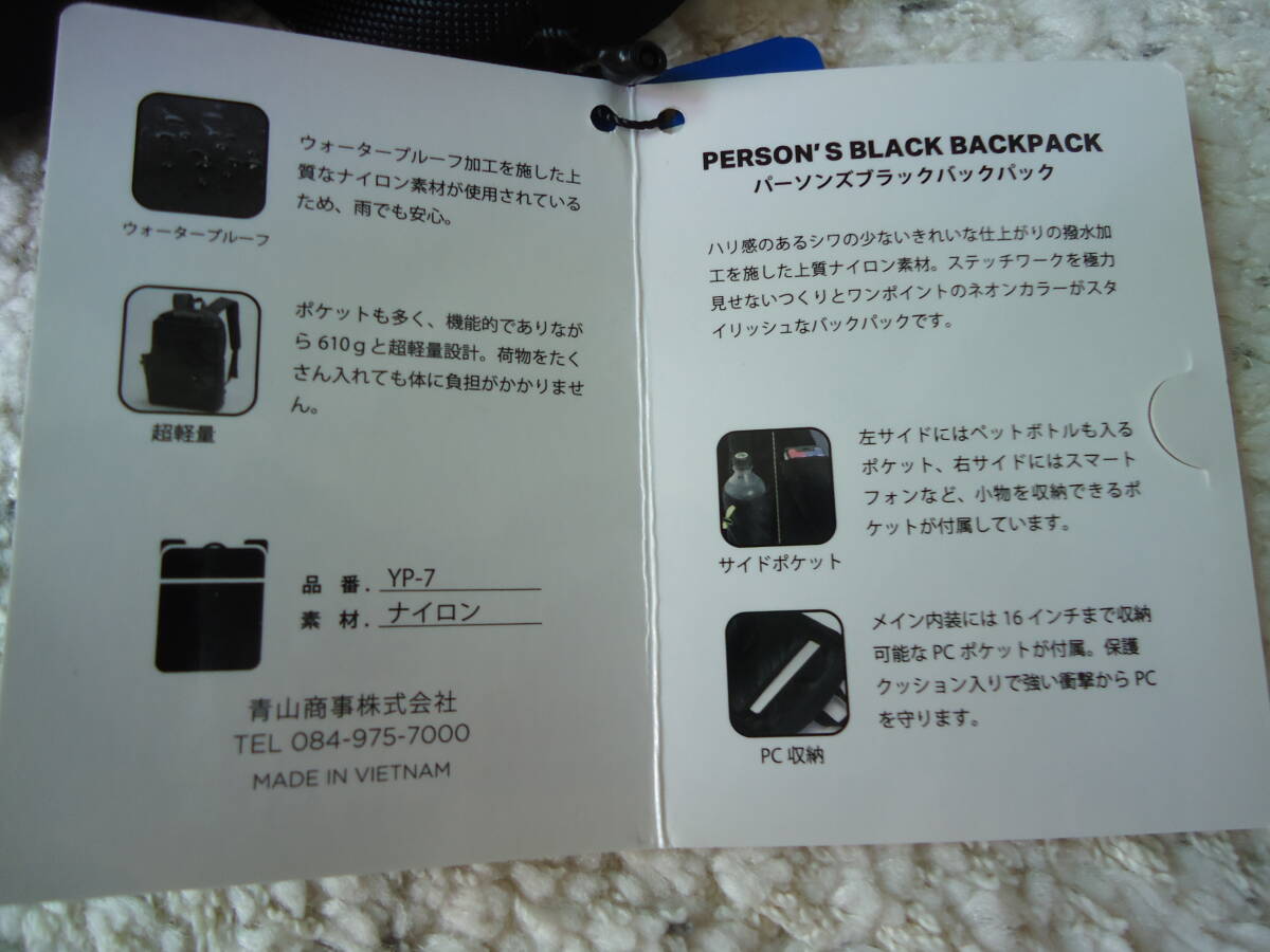 <未使用品> PERSONS ビジネス バックパック 定価\8,690- ★同梱可 自宅での引き渡し可★