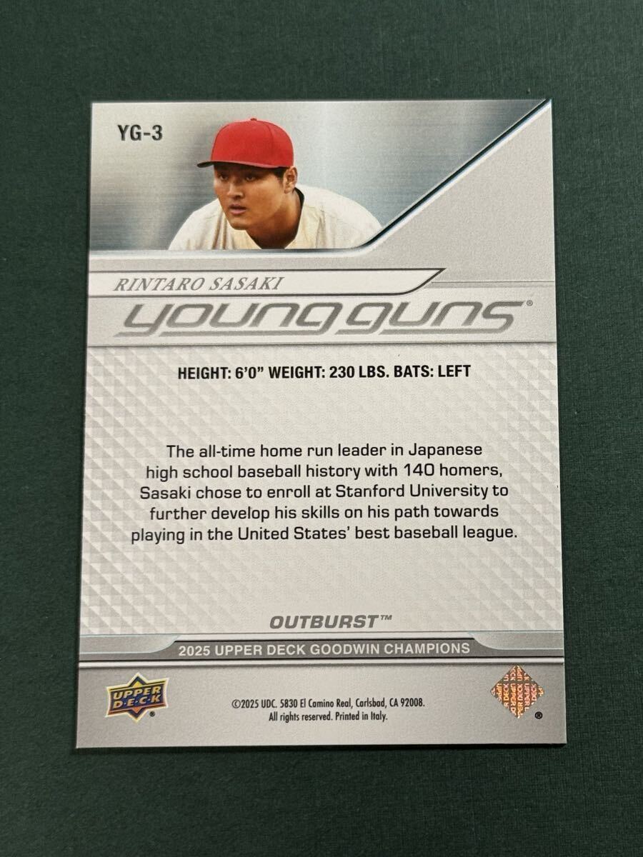 SP 佐々木麟太郎 Rintaro Sasaki 2025 Upper Deck Young Guns Outburst MLBカード スタンフォード大学