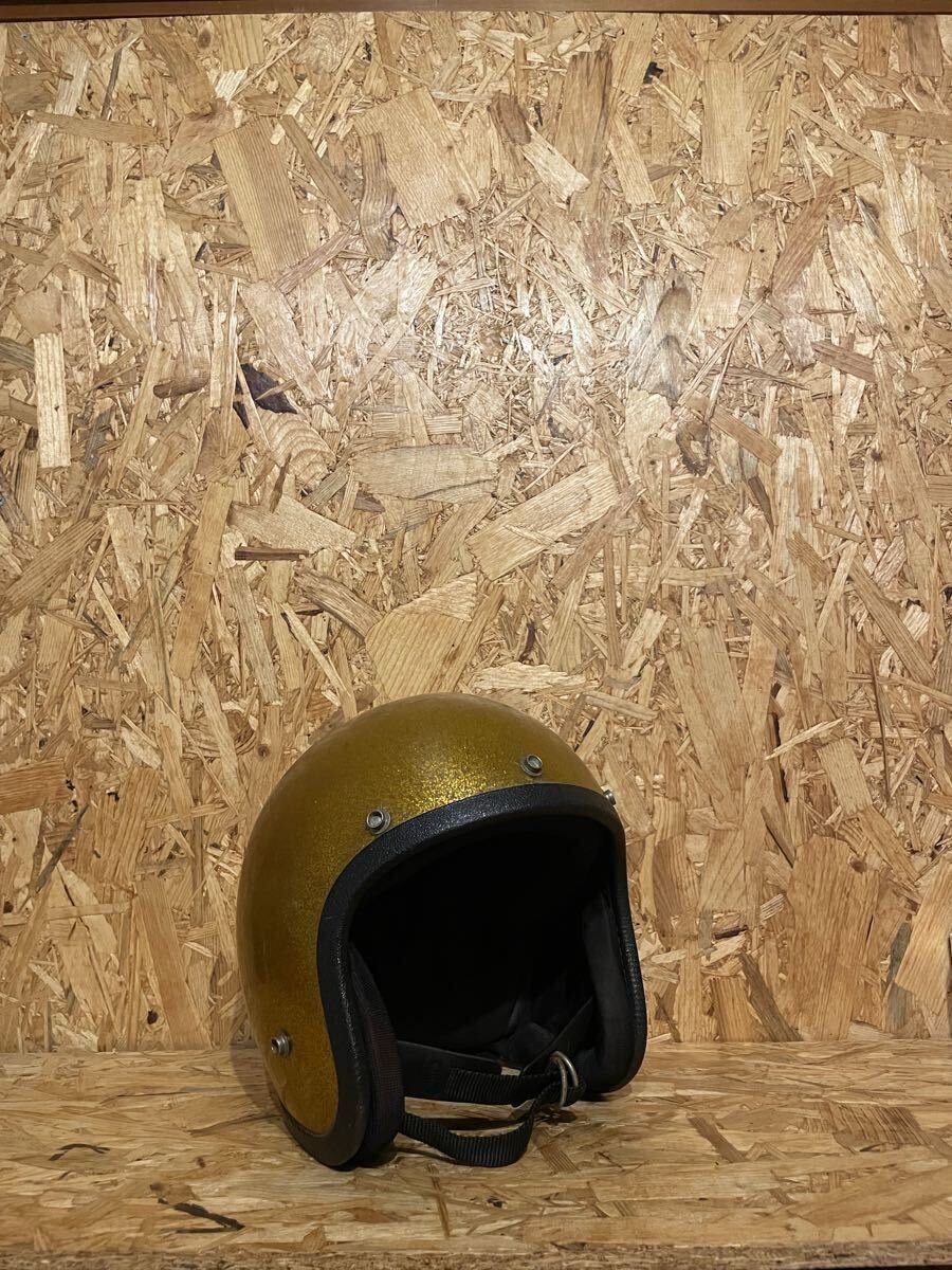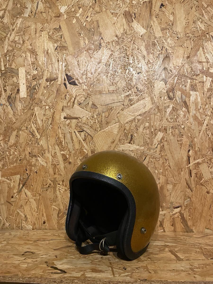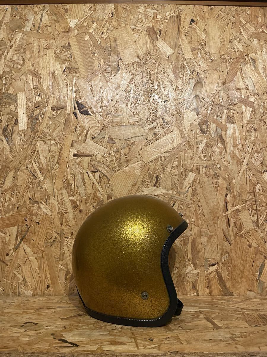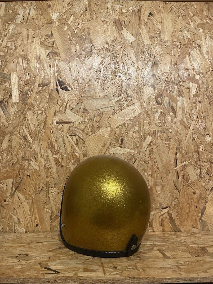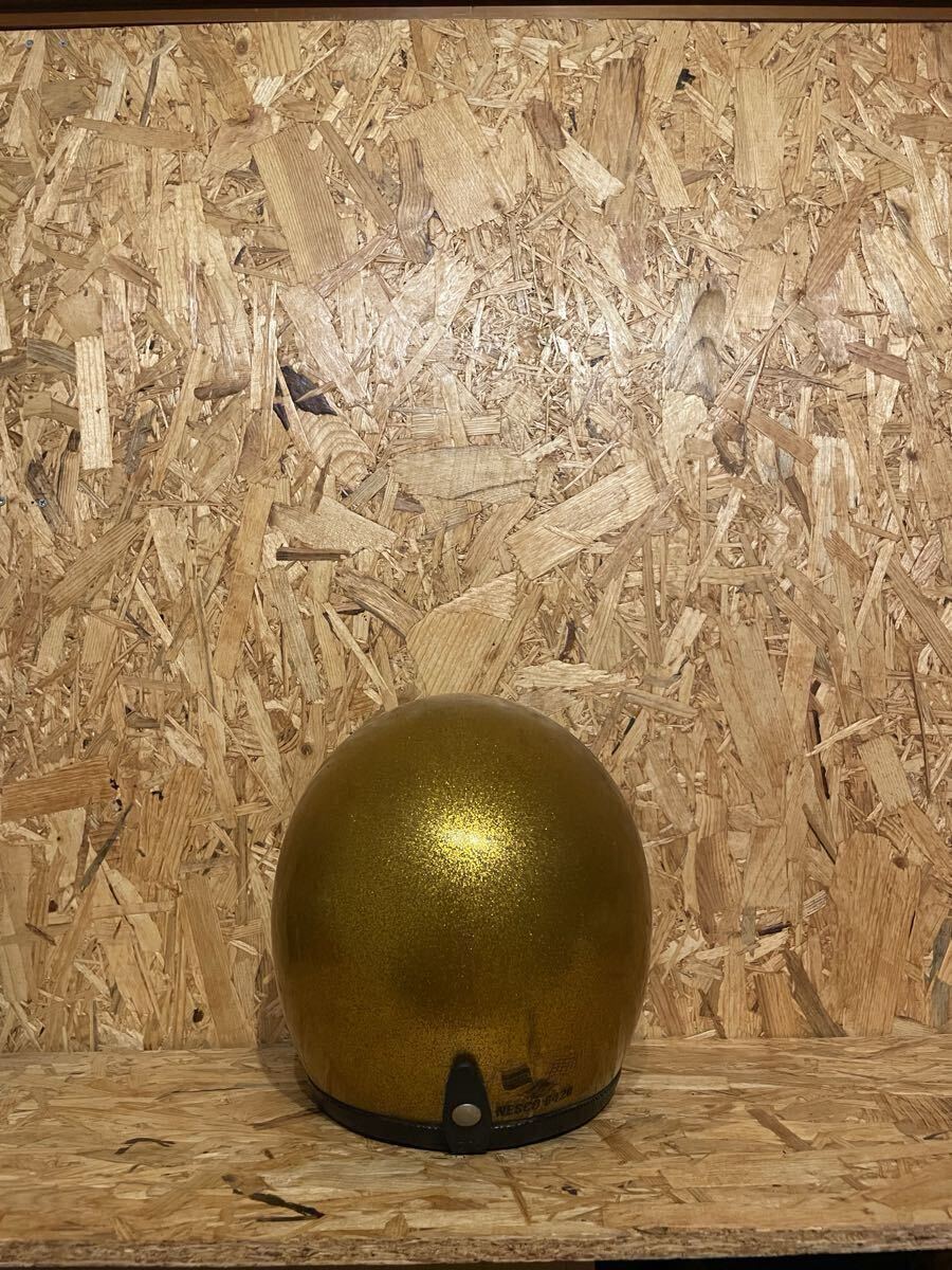 ビンテージらしいゴールドラメで雰囲気抜群のヘルメットですので旧車にも現行車にも似合うヘルメットだと思います。