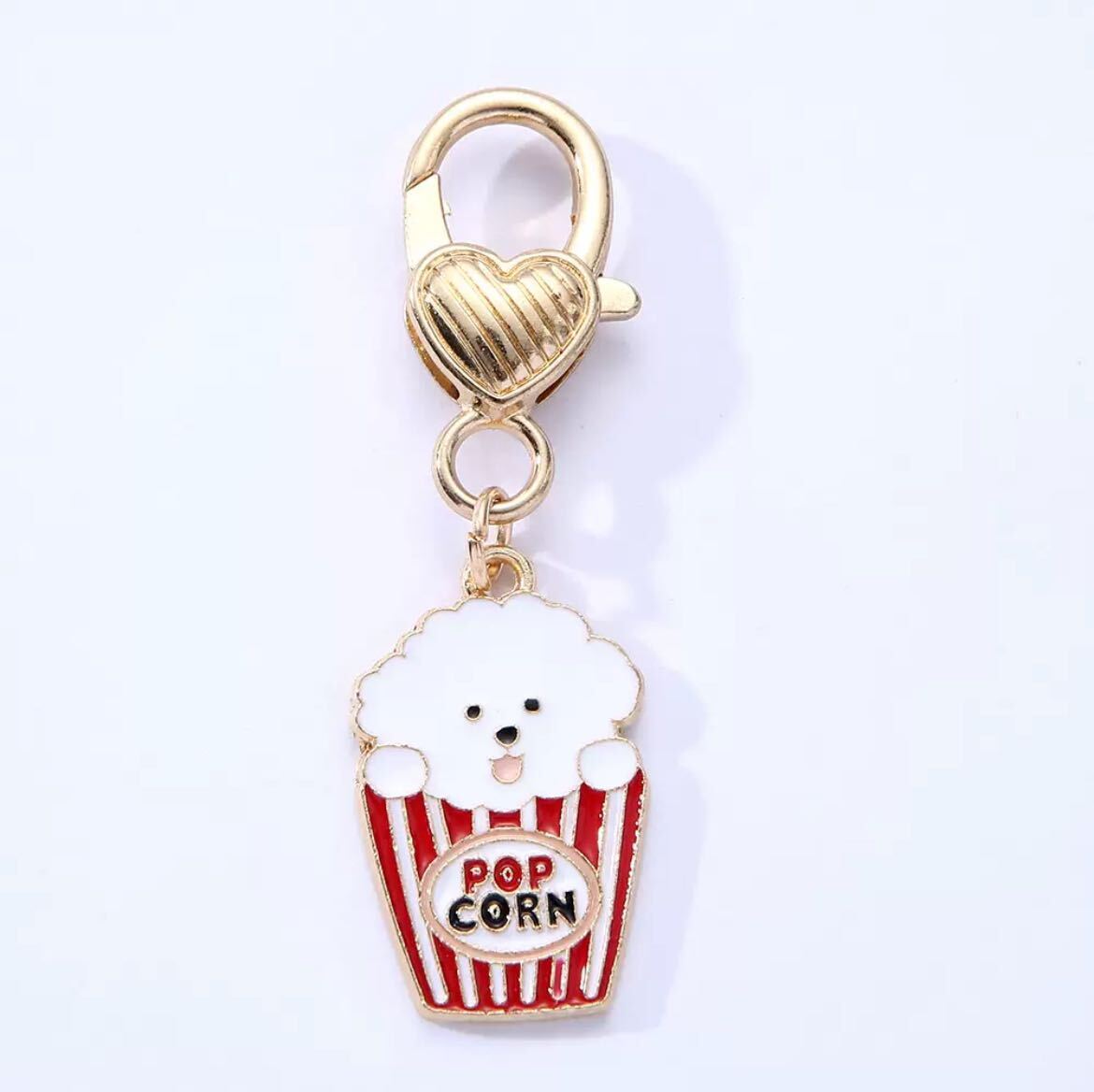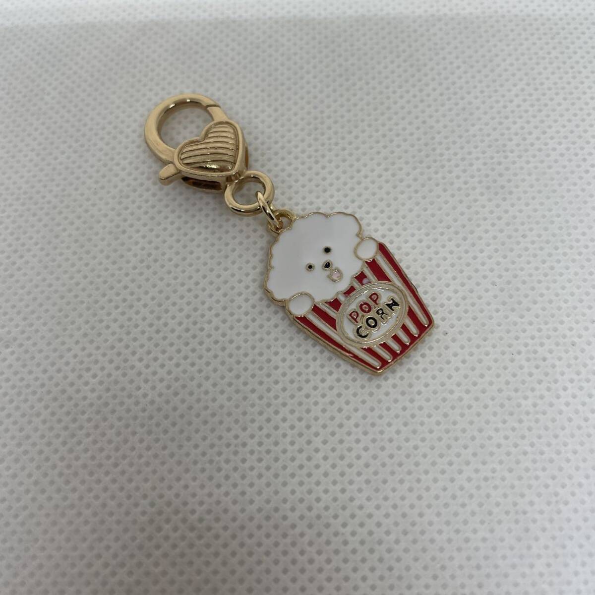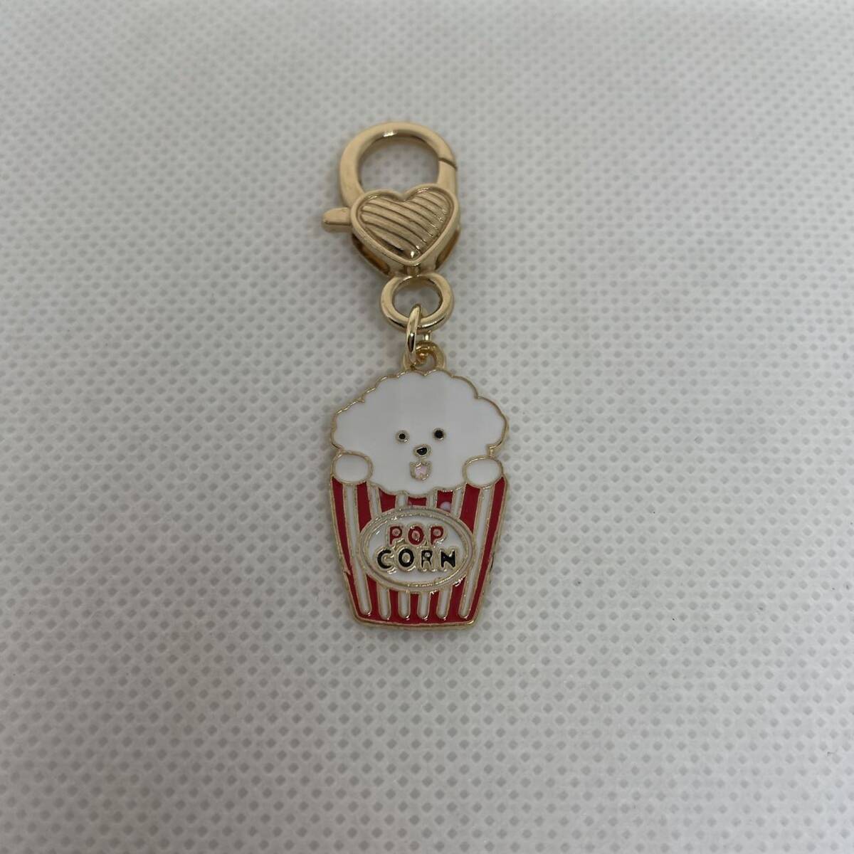 可愛いビションフリーゼがポップコーンに入っているチャームです