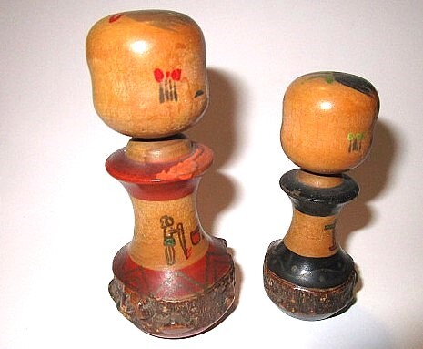 稀少 レトロ★こけし 湯河原 サーフィン 湯河原温泉 伝統工芸品 こけし人形 木製 置物 昭和レトロ インテリア 大小 2個★
