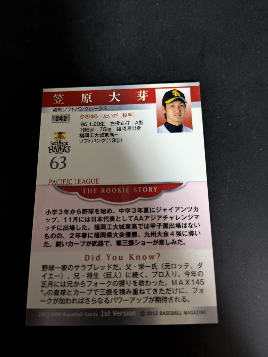 即決★BBM2013 福岡ソフトバンクホークス 笠原大芽 ルーキーカード