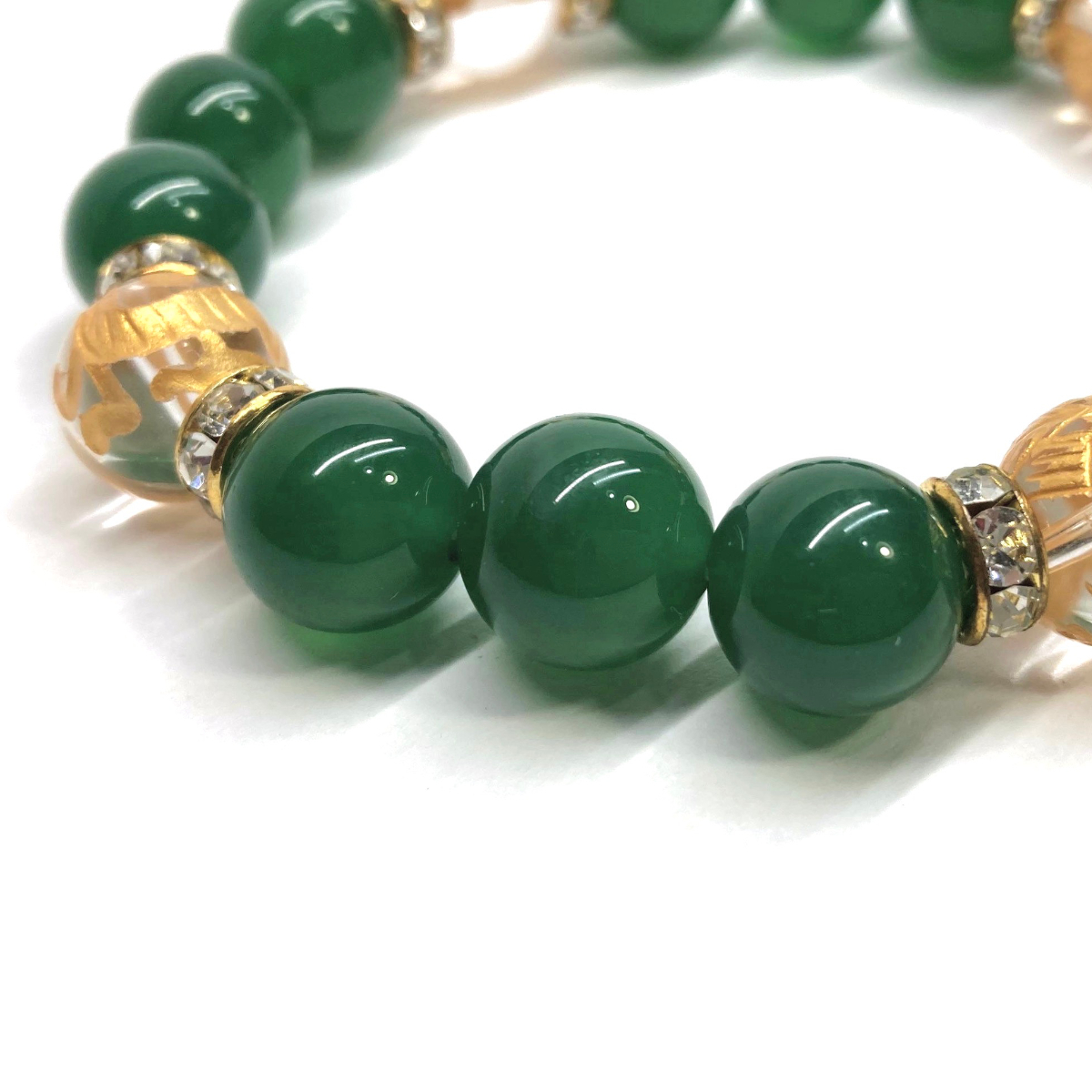 四神獣金彫水晶×緑瑪瑙 12mm パワーストーン ブレスレット天然石 青龍 白虎 玄武 朱雀 運気上昇 お守り 金運 健康運 四神獸 四神相応 G