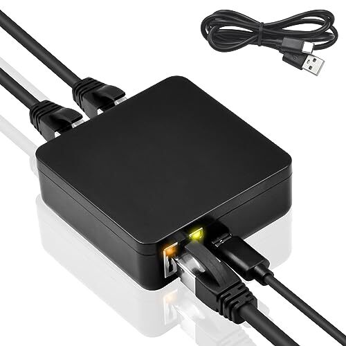 Poyiccot RJ45 LAN分岐 同時使用 2口、1000Mbps LAN ケーブル 延長コネクタ、 RJ45 分岐コネクター(USB電源