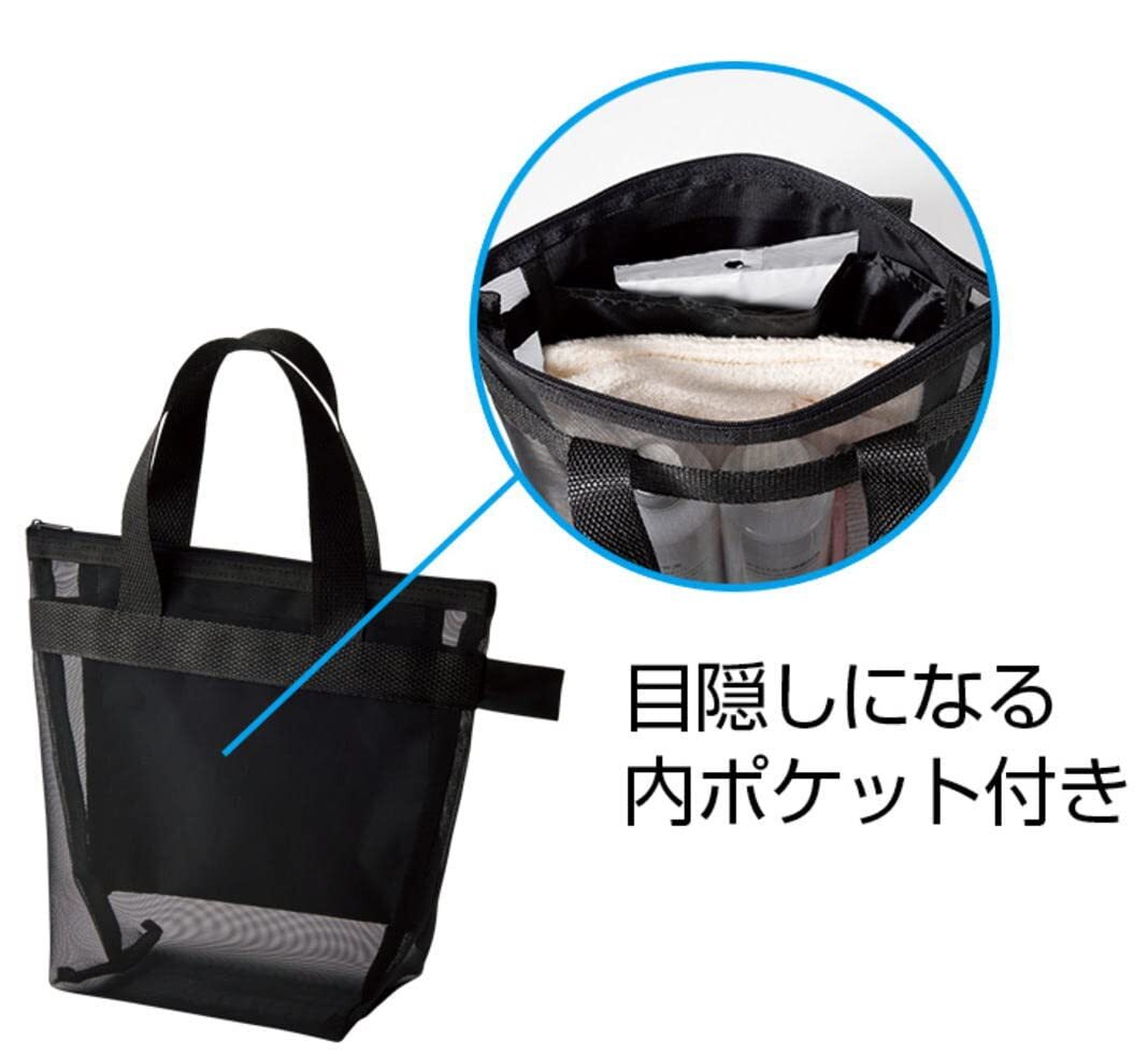 レディース メンズ 小さめ ブラック メッシュ素材 水切り 温泉バッグ コンパクト ジムバッグ スパバッグ [SACHIHARE]