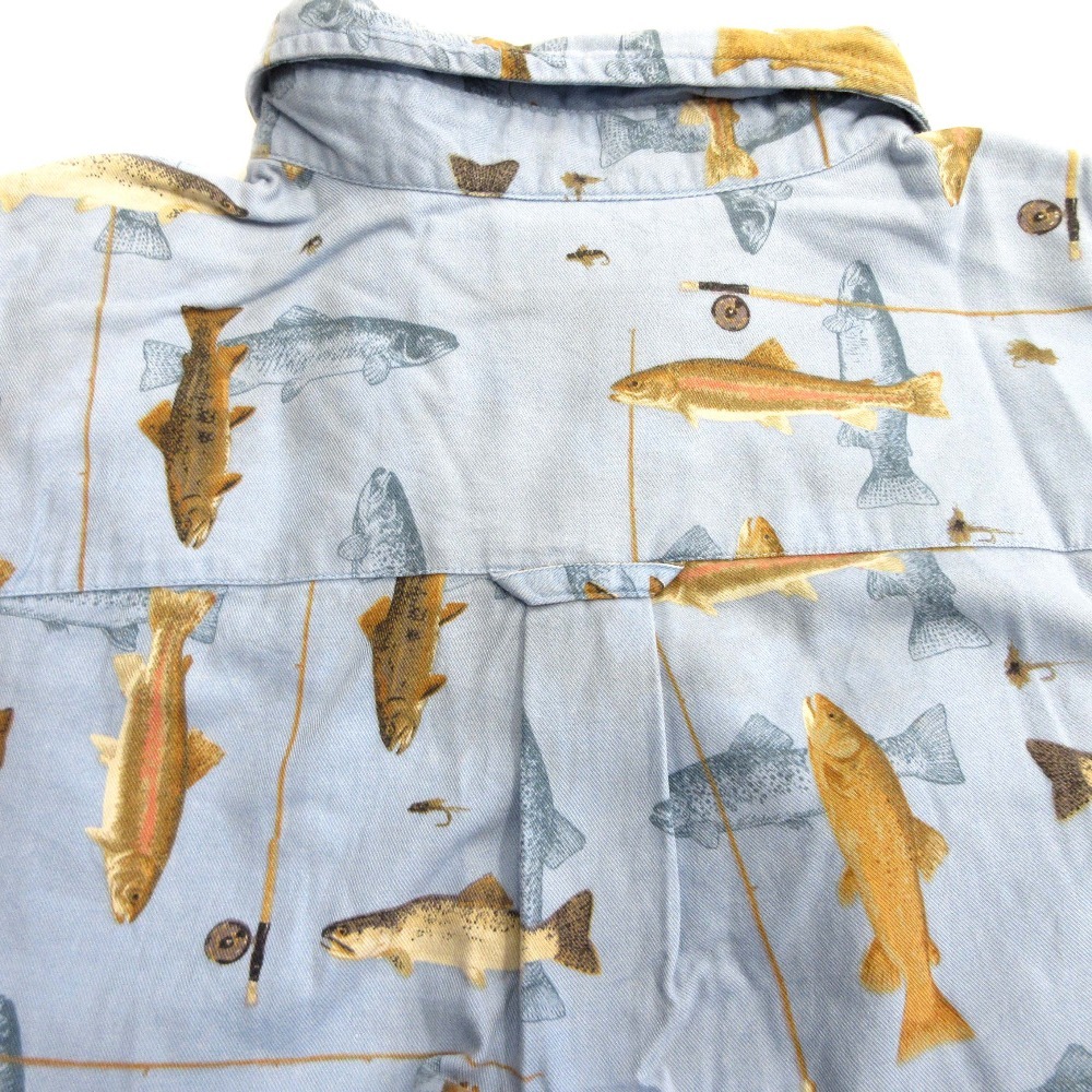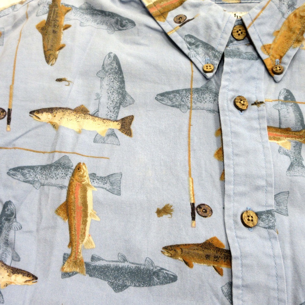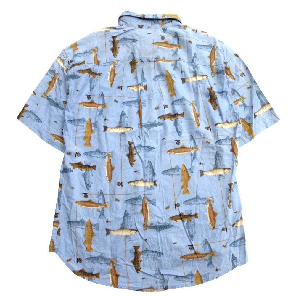 商品名:Columbia RIVER LODGE コロンビア リバーロッジ フィッシュ パターン シャツ さかな柄 魚 半袖 XXL オールド ヴィンテージ 青