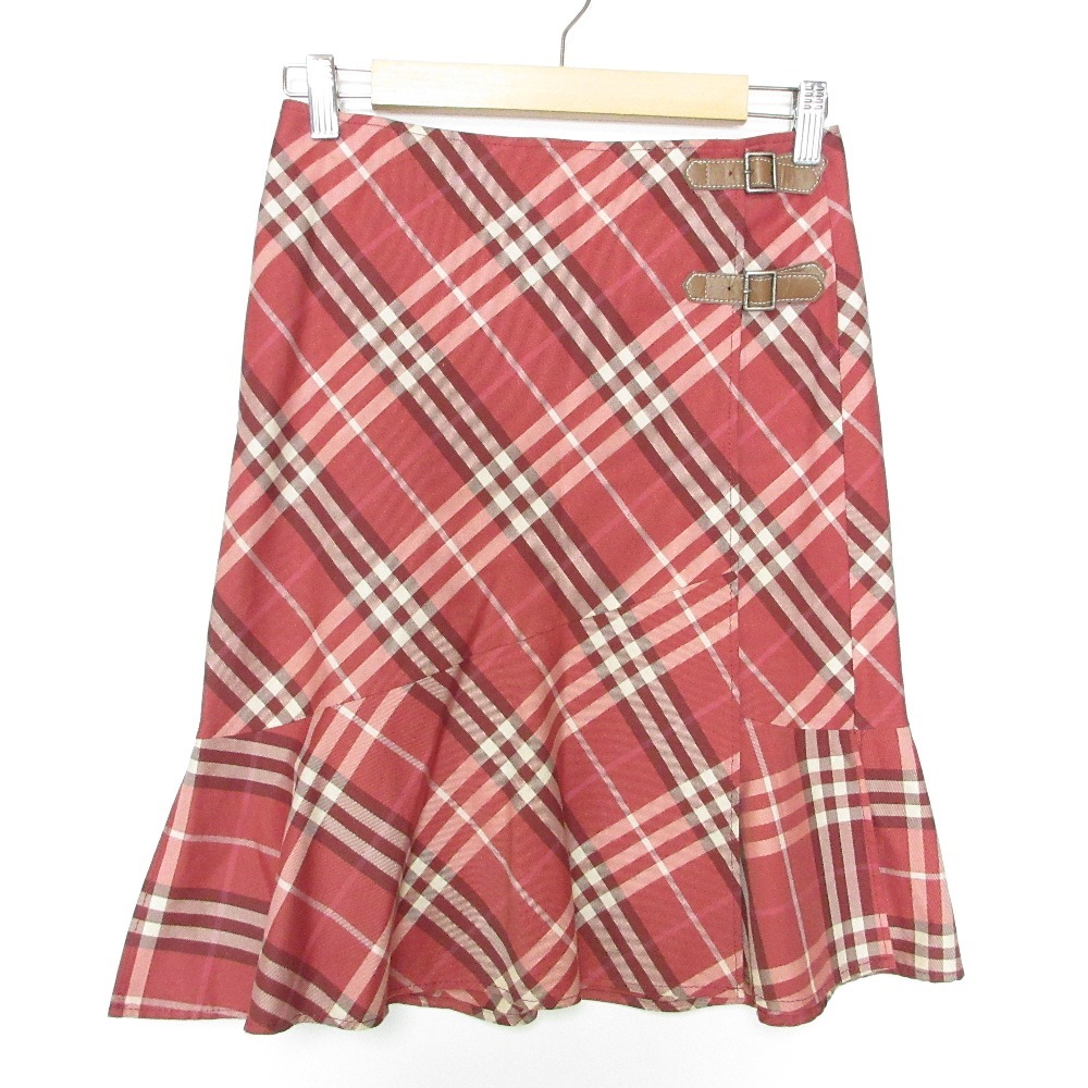商品名:BURBERRY BLUE LABEL バーバリーブルーレーベル チェック柄 フレアヘム ひざ丈 ラップスカート 38 ピンク