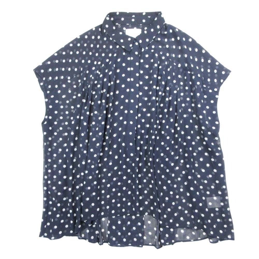 商品名:Ray Beams レイビームス ドット タック シアー ブラウス シャツ プルオーバー フレンチスリーブ 総柄 紺 ネイビー