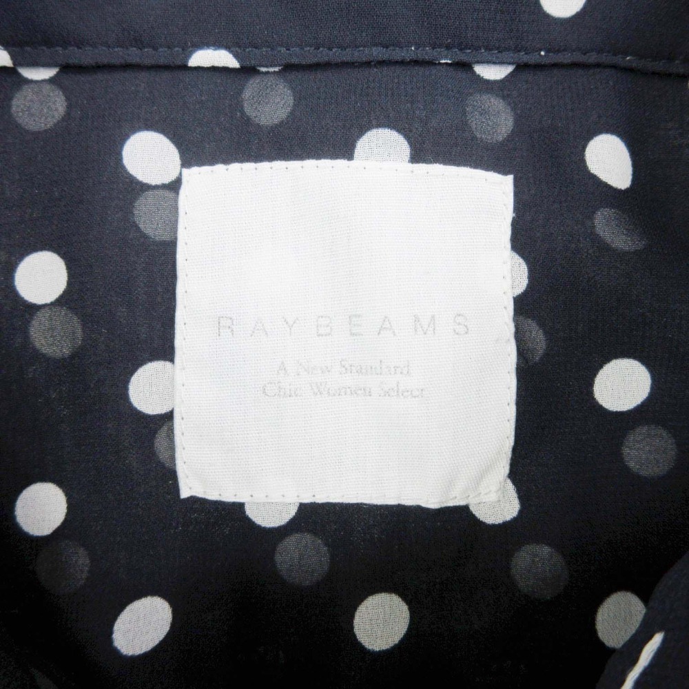 美品 Ray Beams レイビームス ドット タック シアー ブラウス シャツ プルオーバー フレンチスリーブ 総柄 紺 ネイビー
