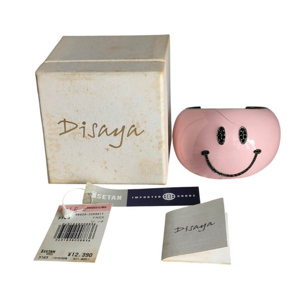 良品 DISAYA ディサヤ ラインストーン スマイル ワイドバングル ブレスレット アクセサリー 箱付き ピンク