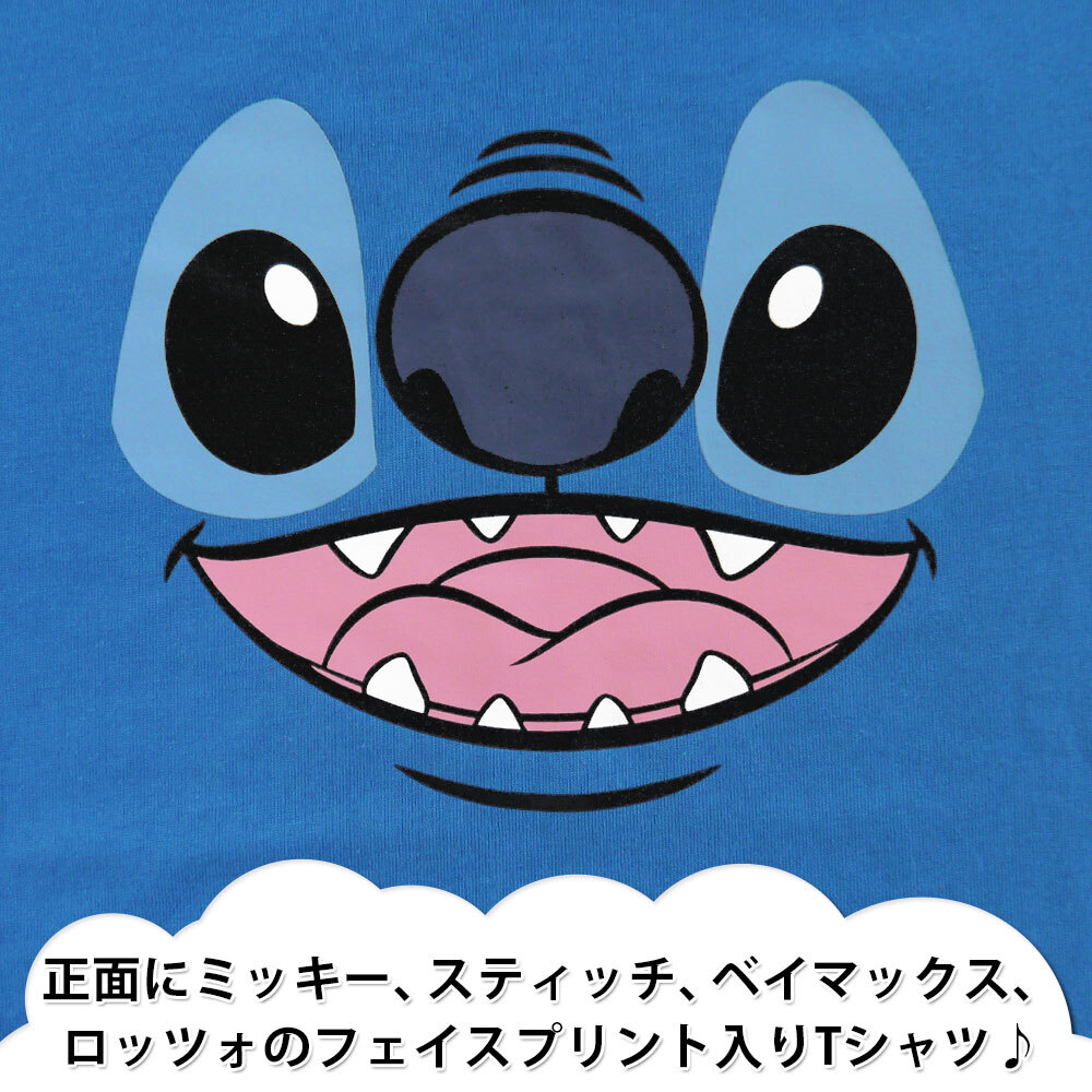 正規店仕入れの新品未使用品です 綿とポリエステル素材で、吸汗速乾に優れます 正面にミッキーマウス、スティッチ、ベイマックス、 ロッツォのフェイスプリント入り半袖Tシャツ |