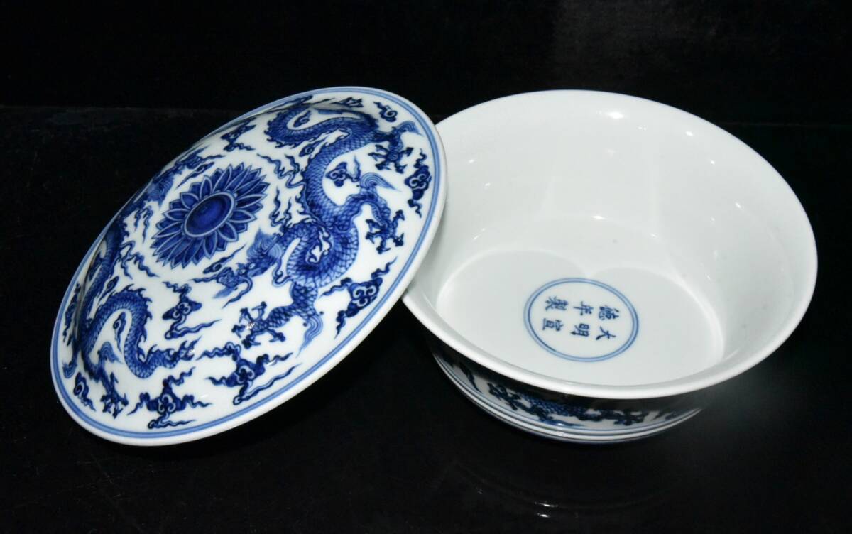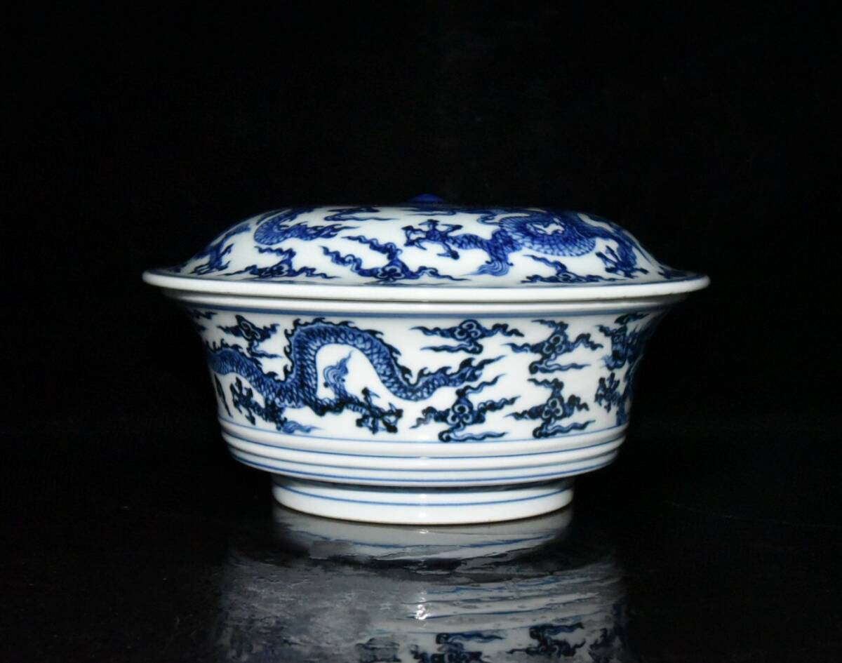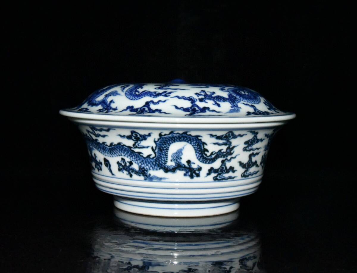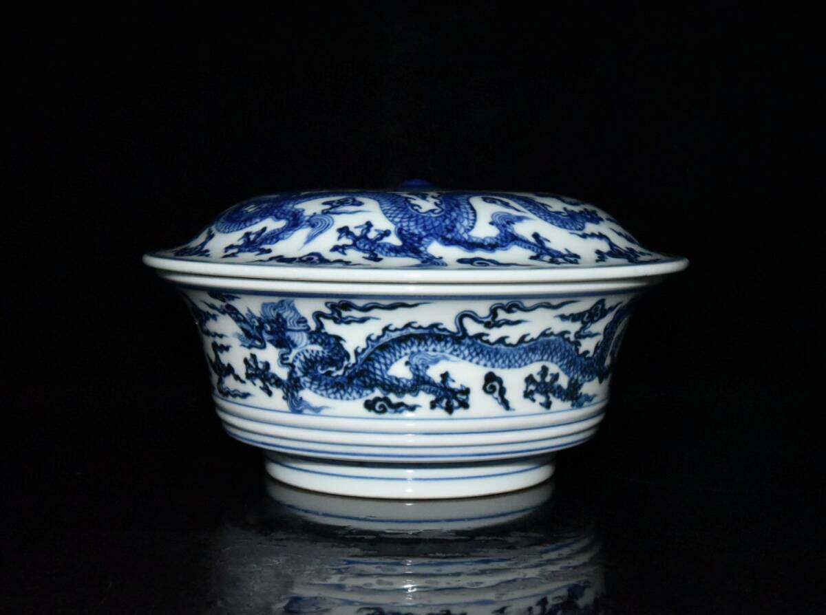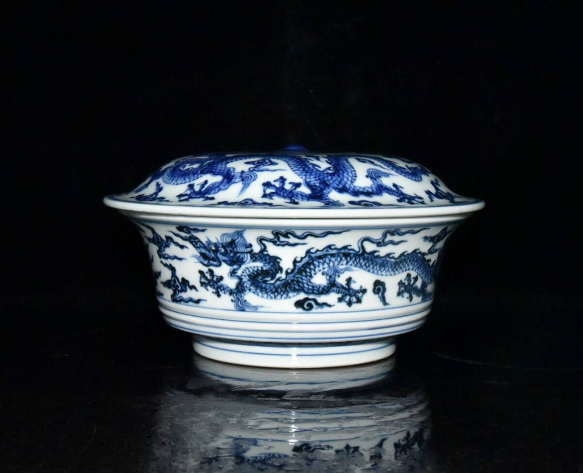 | 【蔵友館蔵品・明・宣德年製款・古陶瓷品・青花・龍紋・蓋碗・陶藝】・古董品・中国古玩・時代物・希少珍品・中国時代美術 |