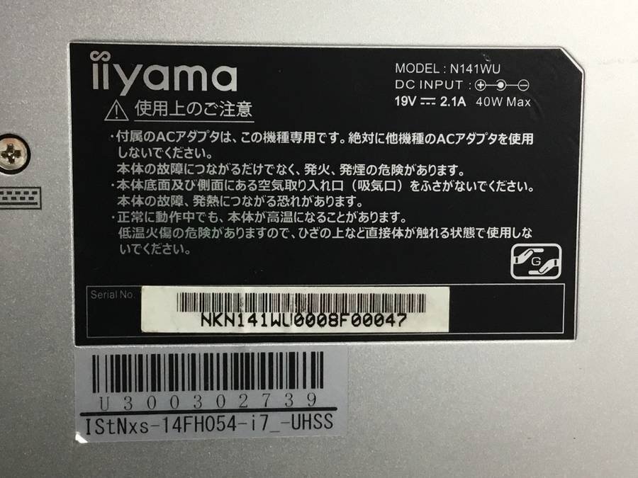 iiyama IStNxs-14FH054-i7_-UHSS - Win11 Core i7 8550U 1.80GHz 16GB 1000GB HDD 他■現状品