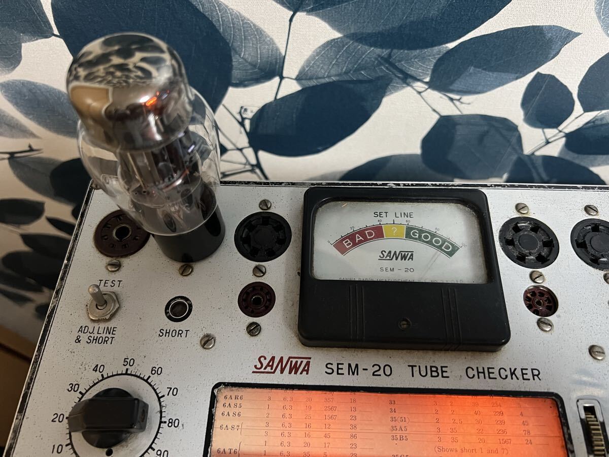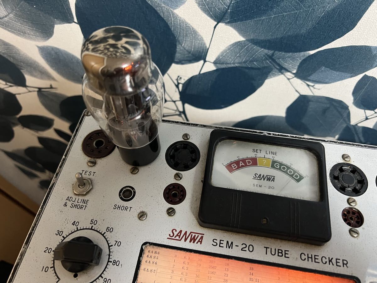 当方の試験機で同型式の未使用の真空管を試験すると85程度の値を示しますので基準として参考にしてください。