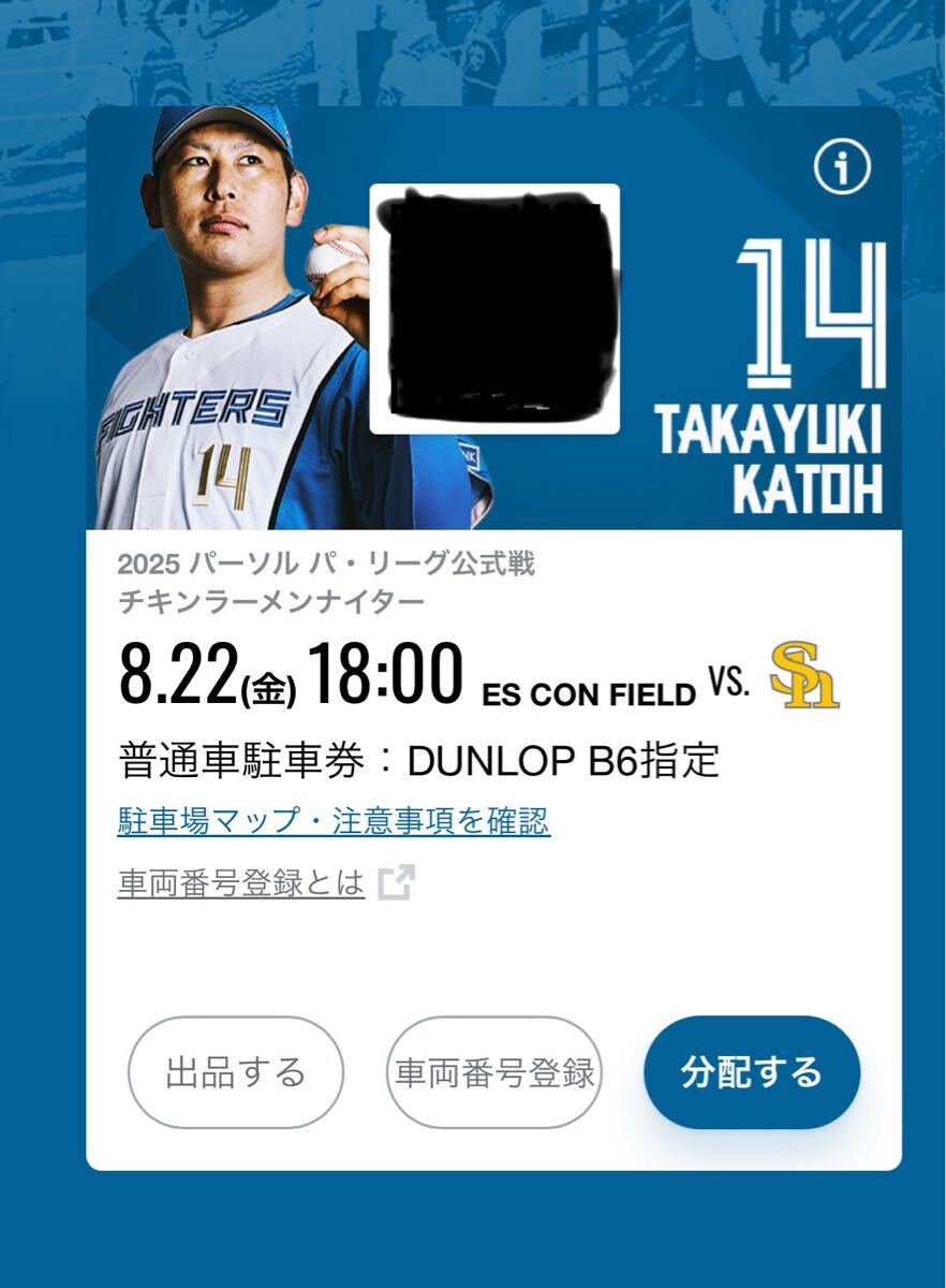 8月22日(金)日本ハムファイターズvsソフトバンク戦