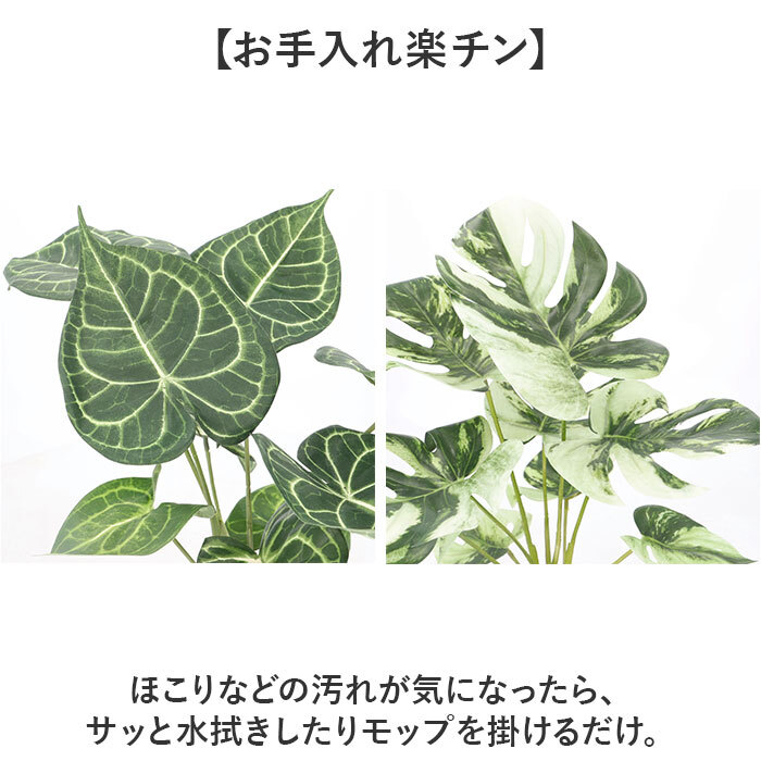 | 素材 | ・モンステラ [本体]PVC、PE、鉄、PS、石 [鉢]ABS ・クラリネルビウム [本体]ポリエステル、PE、鉄、PS、石 [鉢]セメント |