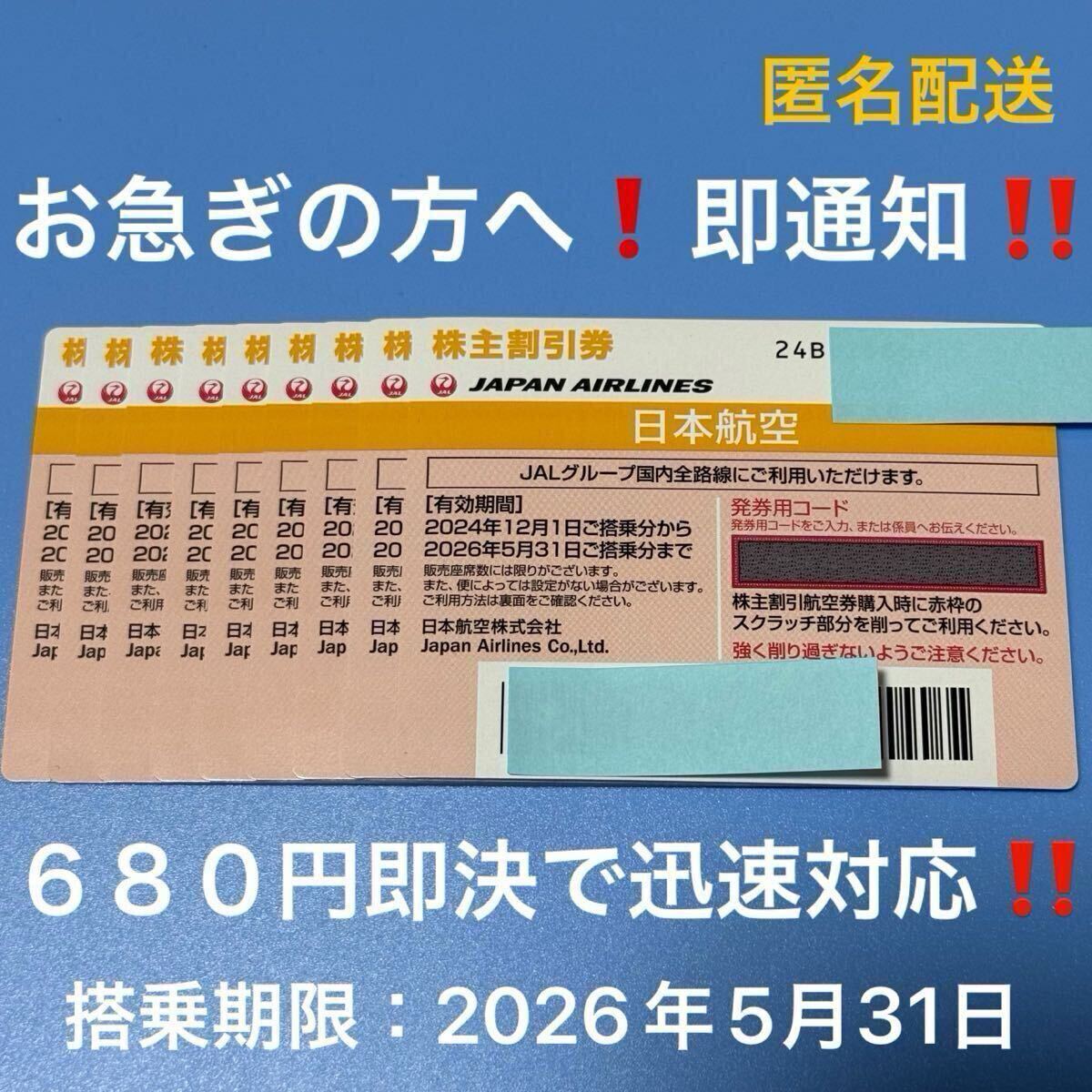 ・お急ぎの方へ!JAL株主割引券1枚あたり680円即決!