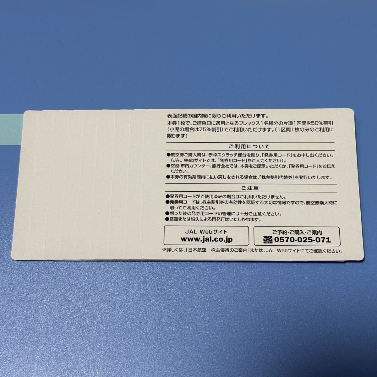 ・本券1枚でJAL国内線の大人フレックス運賃1名様分の片道1区間が株主優待50%割引(小児の場合は75%割引)でご利用できます。(往復は2枚必要)