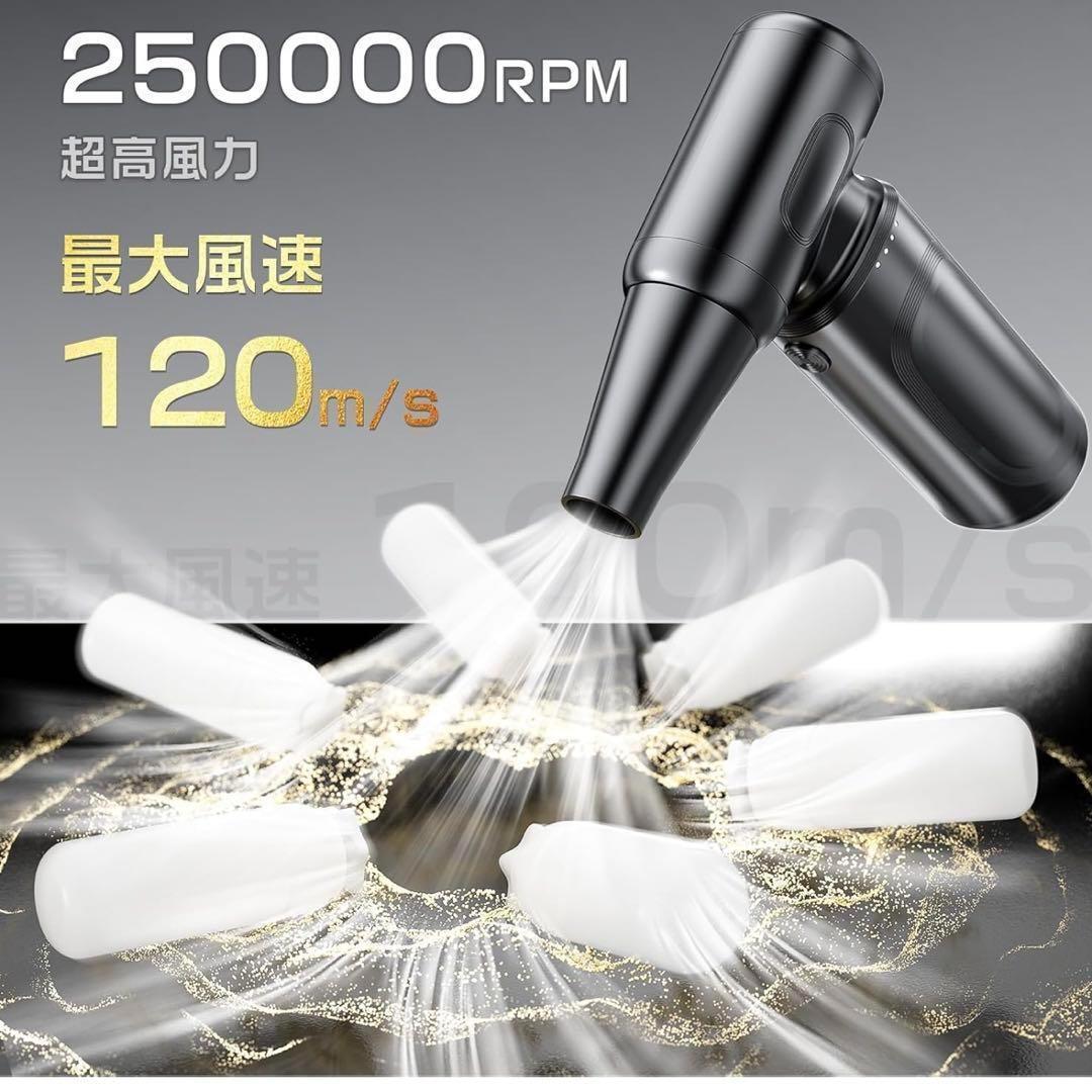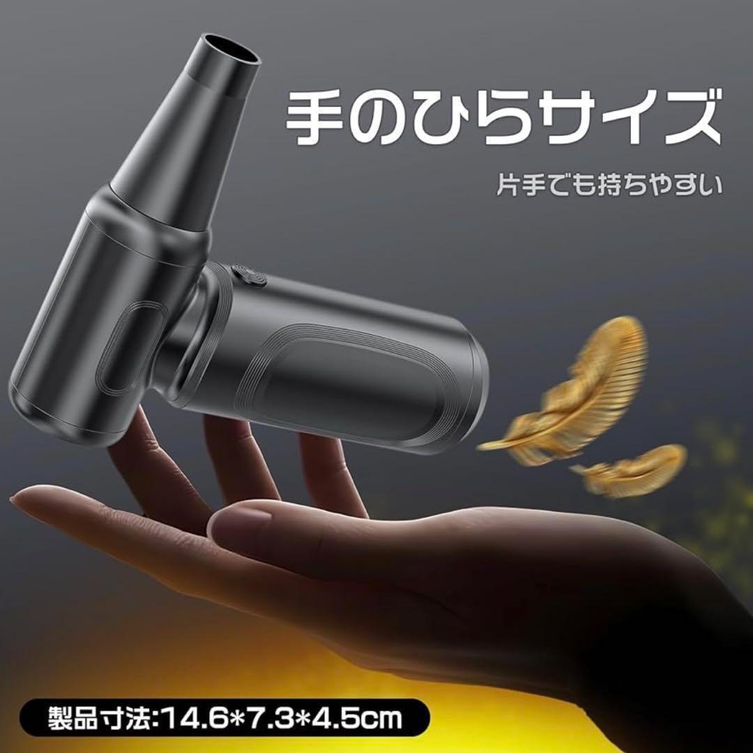 【最強ブロワー】日本業界初のダブルタービンファンで風量2倍!エアダスターはブラシレスモーターを採用し、ノイズは以前より低くなった、空気の運動エネルギーを大幅にUP!強力で効率的なエアフローを実現します。風速が弱いという問題点を解決しました。瞬間的に強い風をピンポイントで送れてホコリを吹き飛ばします。耐久性が大幅に向上するだけでなく、消費電力も30%削減できます!