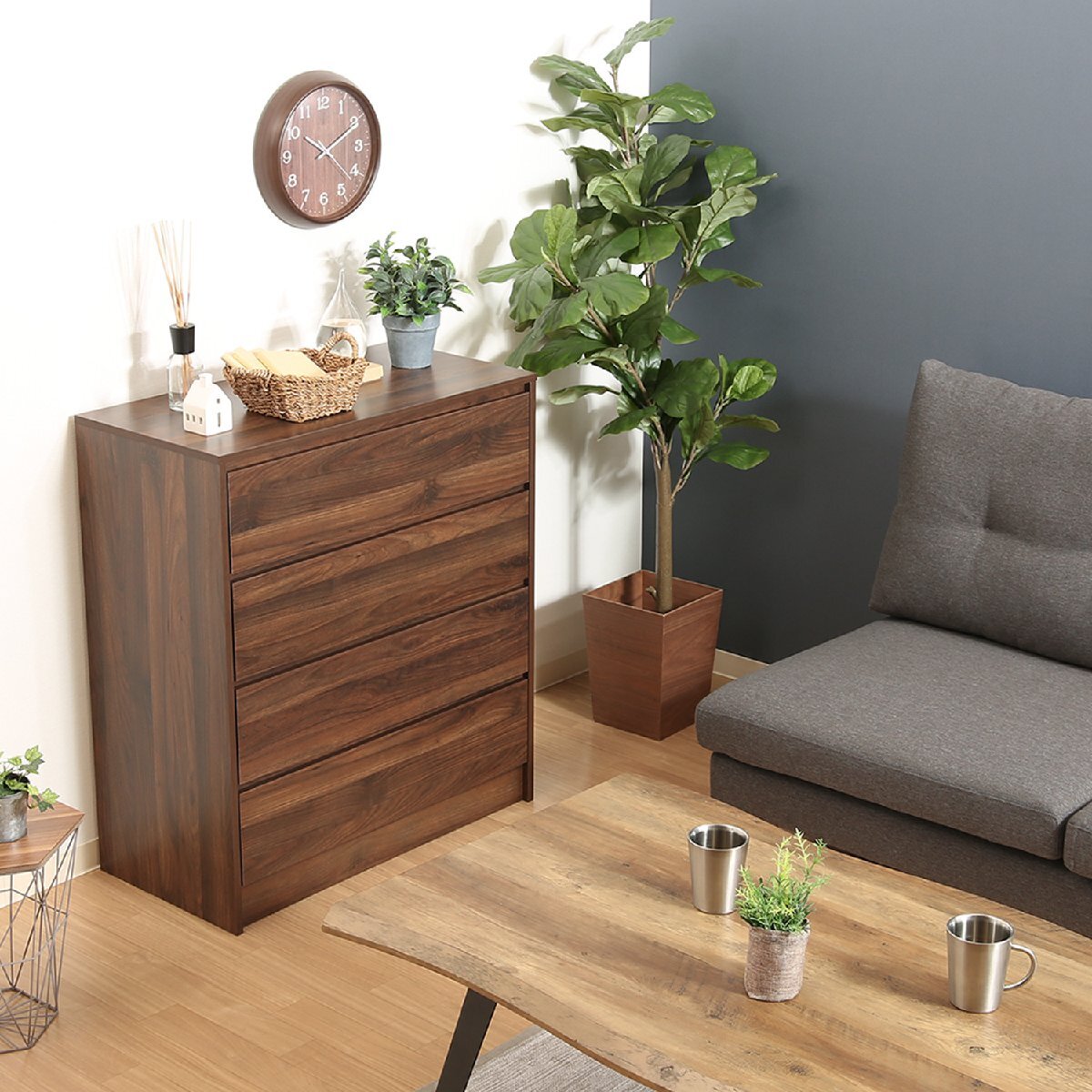 | 備 考 | ■工具不要の簡単組み立て仕様です。 ■収納力抜群の4段チェストです。 ■おしゃれな木目調カラーです。 |