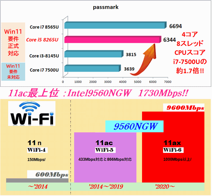 Intel第8世代 Whiskey Lake Core i5-8265U 1.6~最大3.9GHz(Intel Turbo Boost Technology 2.0対応) 4コア 8スレッド (Intel Hyper-Threading Technology対応)飛躍的な高速処理。 インテル スマート・キャッシュ 6MB |