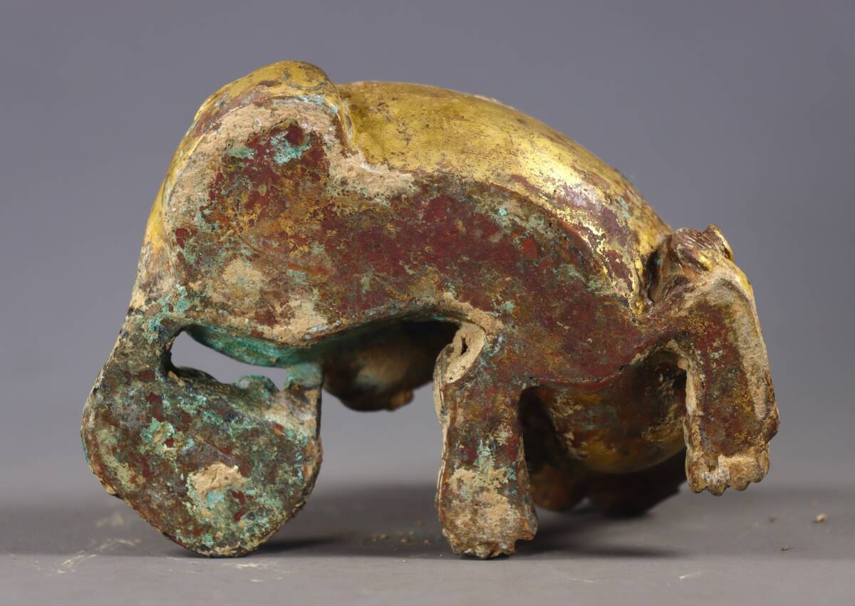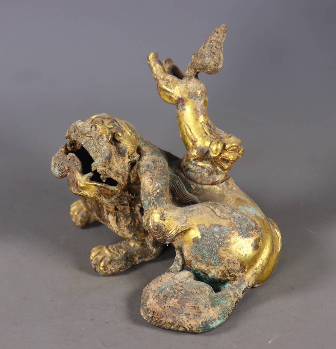 *珍品旧蔵* 漢代 塗金子母獅席鎮 銅製 銅器 極細工 唐物 中国古玩 骨董品 古美味 H48