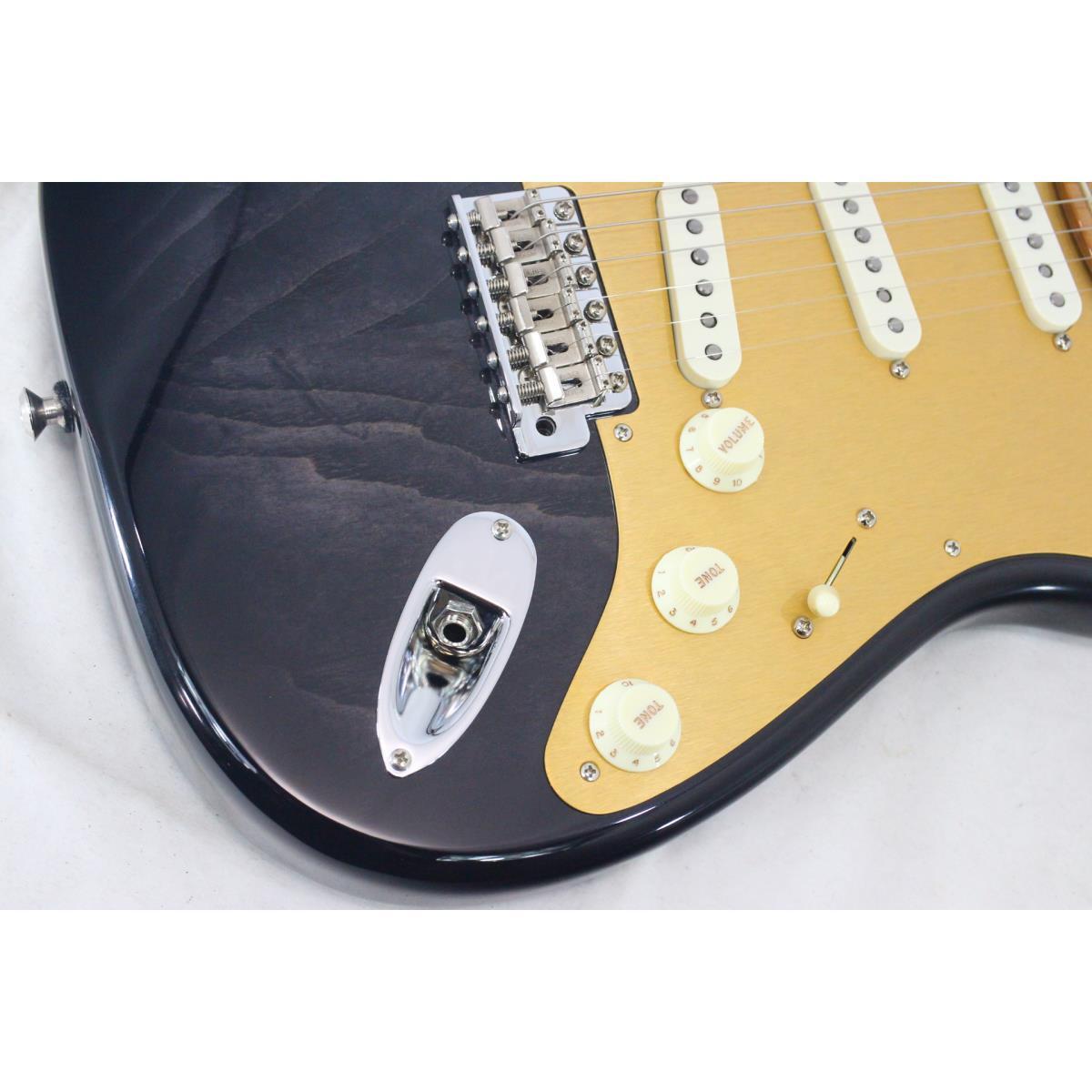 2024年製『ヴィンテージ』と『モダン』を高い次元で融合させたカスタムショップモデル、『American Custom Stratocaster』が入荷いたしました!ネック、ボディー共に56ストラトがベースでありながら、アッシュ材の木目と『Ebony Transparent』カラーが醸し出す妖艶な雰囲気が特徴的な一本。2Aグレードのバーズアイ・メイプルネックと、アノダイズド・ピックガードがその美しさを引き立てます。使用感は少なく、非常に良好なコンディションです。ぜひこの機会にお買い求めください!