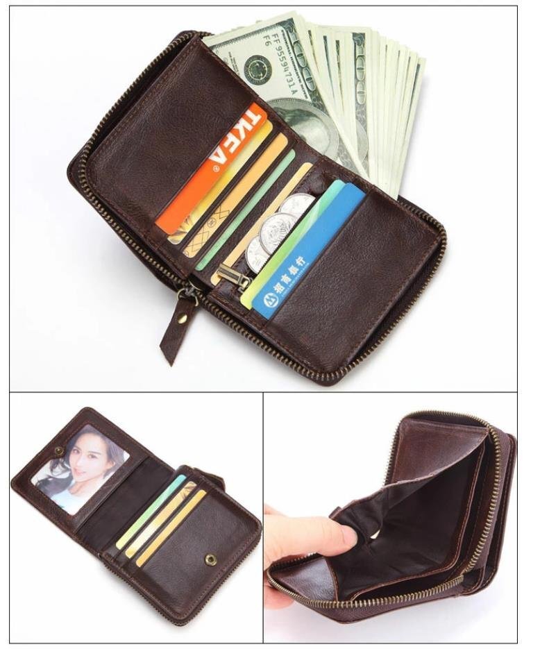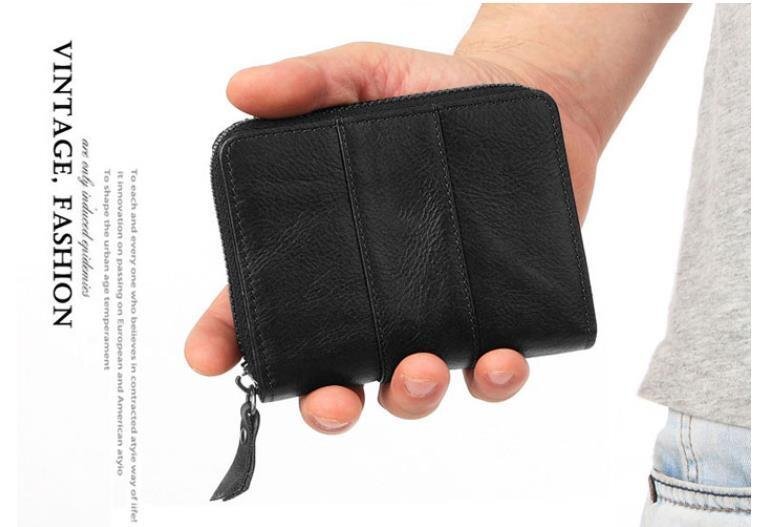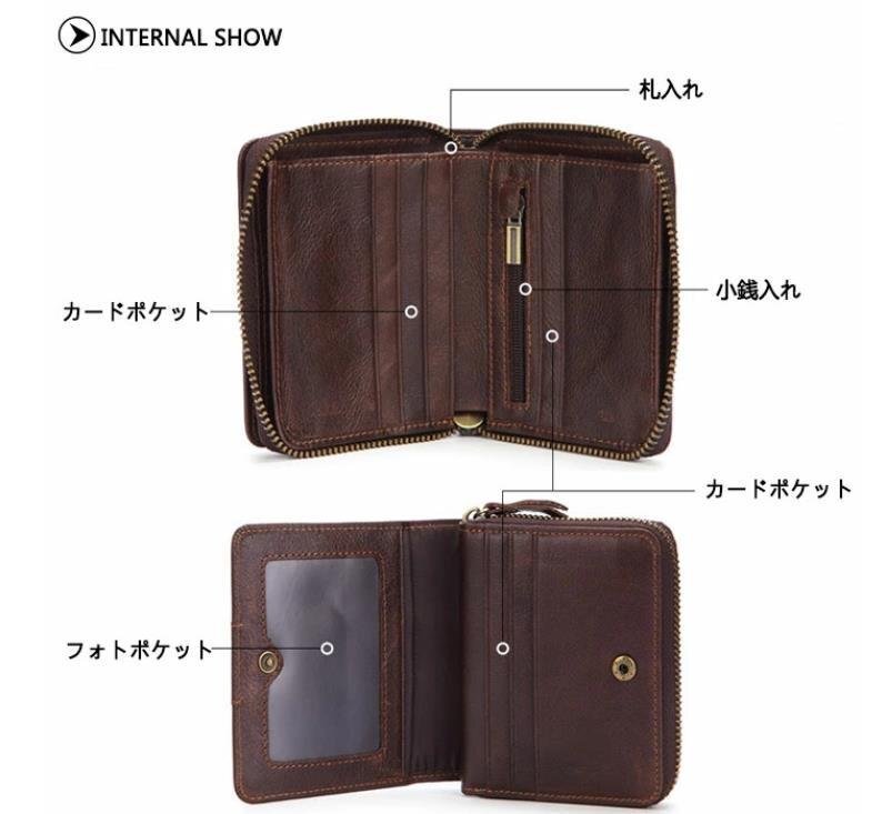 メンズ 財布 二つ折り財布多機能 小銭入れ レザー大容量 カード 本革財布 短い財布人気 男性用 ファスナー☆ブラック