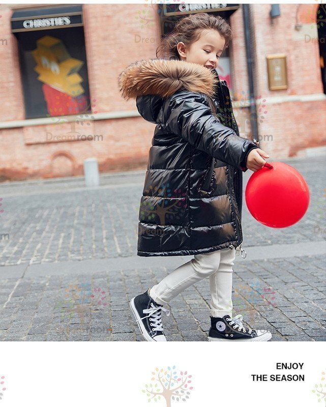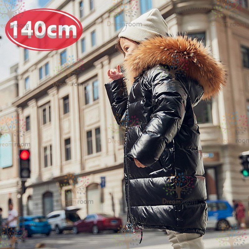 kids シャイニー ダウンコート ロングコート ブラック【140cm】中綿 防水 子供 冬物 冬服 K-303