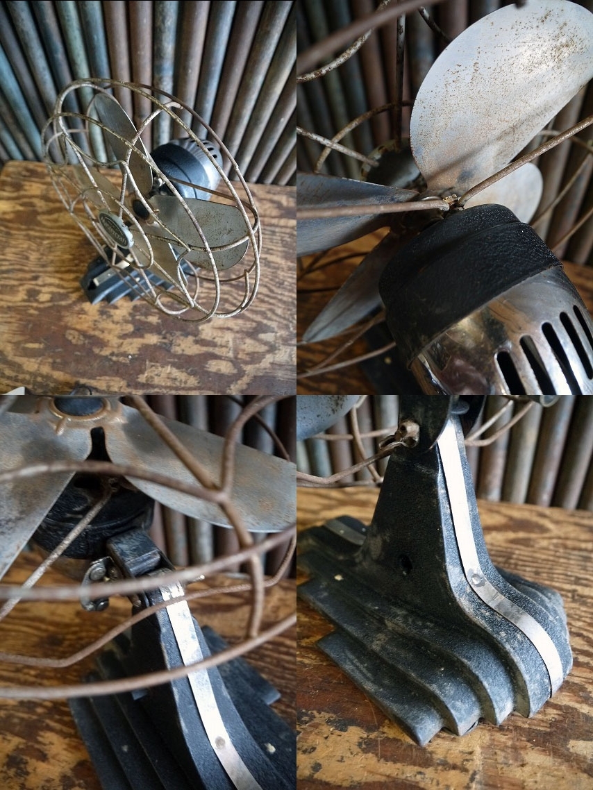 商品説明 岡山STAGE GOOD OLDより出品します。アメリカで買い付けましたアンティークのMaster Craftメタルファンです。渋いメタル素材の重厚な作りで、ロゴプレートのデザインも良く存在感があり抜群の雰囲気があります。表記はございませんがロゴデザインから1940〜50年代前後頃の商品になるかと思います。コンセントコードは切り取られていますので実用はできませんのでディスプレイ用のJUNKとしてご使用下さい。状態ですが、経年による傷、汚れ、フレーム枠に歪みや塗装装剥がれやサビ汚れ、コンセントコードの欠損等はありますが、ディスプレイには問題ない雰囲気のある状態です。あくまでアンティークジャンクですのでご理解いただける方のご購入をよろしくお願いします。 サイズ 高さ約36,5cm、ファン部分の直径約29cm、土台の横幅約13,8cm、奥行き約23,5cmになります。 発送方法 保障の利く佐川急便の元払い140cmサイズ料金で発送します。 コメント 店頭にも出しています。タッチの差で売れた場合はご了承下さい。■落札後の連絡及びご質問の返答は基本的に午前10時~午後6時までとさせて頂きます。毎週水、木曜日、年末年始や時間外でのご連絡は休み明け及び翌日のご連絡となりますので予めご了承下さい。 STAGEホームページ https://www.good-oldstage.com/ |