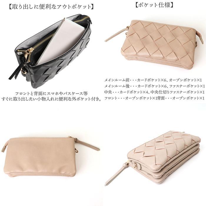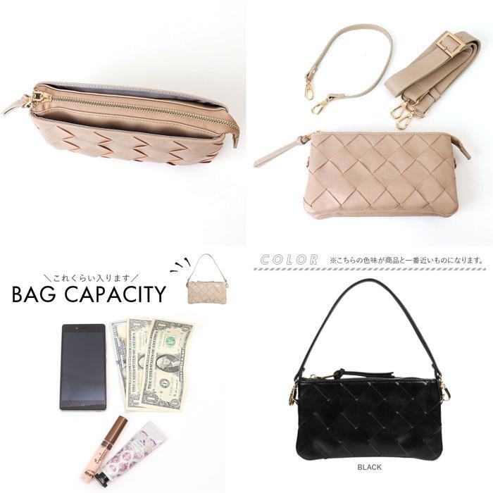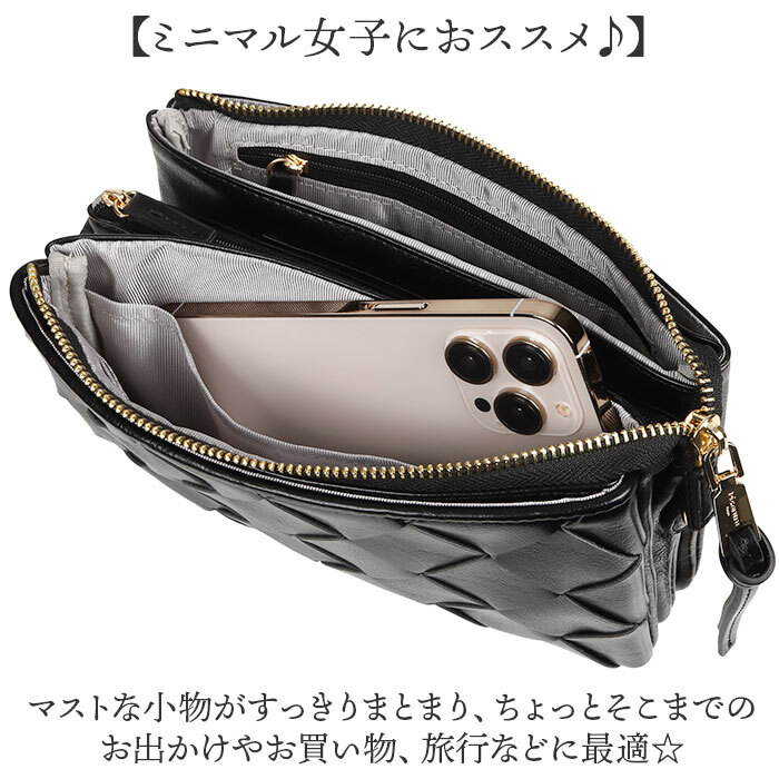 | 商品説明 | ・・【嬉しいお財布機能付き】 ・編み込みデザインが大人可愛い♪ウォレットバッグがPisoraroから新発売。 ・【編み込みデザイン】 ・フロントは合皮を編み込み、シンプルながら大人可愛い仕上がりに◎ ・【ミニマル女子におススメ♪】 ・マストな小物がすっきりまとまり、ちょっとそこまでのお出かけやお買い物、旅行などに最適☆ ・【持ち方を選べる2way仕様】 ・長いストラップを付けてポシェット、ストラップを取り外せば、クラッチバッグとして活躍 ・【さらにハンドバッグにも】 ・短いストラップに付け変えてハンドバッグとして使える♪シーンに合わせて持ち方をチョイス♪ ・【たっぷり入る3ルーム構造】 ・内側は3つのルームに分かれており、仕分けしやすく取り出しやすいつくり。 ・【カードも現金もしっかり入る】 ・カード収納や現金の収納にピッタリなファスナーポケットを配置し充実な財布機能も魅力。 ・【取り出しに便利なアウトポケット】 ・フロントと背面にスマホやパスケース等すぐに取り出したい小物入れに便利な外ポケット付き。 ・【ポケット仕様】 ・メインルーム前・・・カードポケット×6、オープンポケット×1 ・メインルーム後・・・カードポケット×6、ファスナーポケット×1 ・中央・・・カードポケット×4、中央仕切りファスナーポケット×1 ・フロント・・・オープンポケット×1 ・背面・・・オープンポケット×1 |