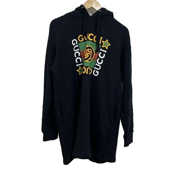 グッチ GUCCI サイズM 610144 XJB8V - 黒×グリーン×マルチ レディース 長袖/ひざ丈/インターロッキングG/パーカーワンピ ワンピース