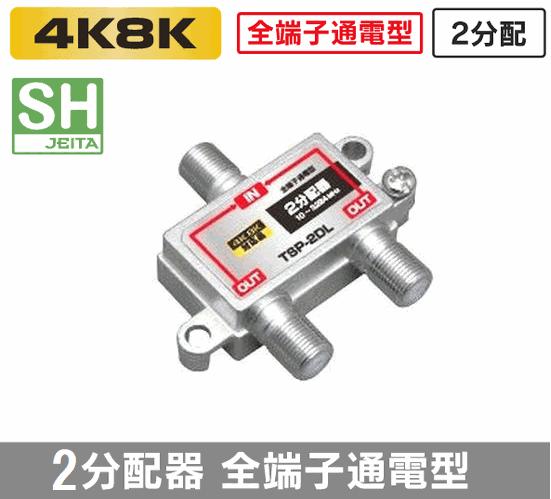 全端子通電型 アンテナ 2分配器 4K・8K 地デジ BS・CS対応 3.2GMHz・2分配 TSP-2DL