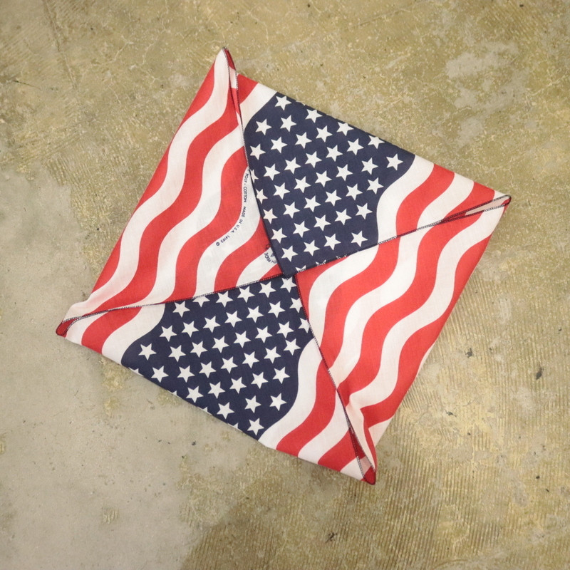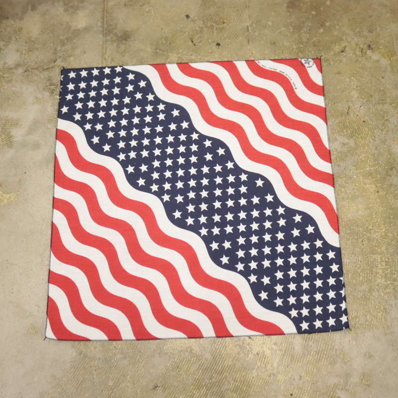商品名 BD367 USA製 80sビンテージ バンダナ■1980年代製 マルチカラー 星条旗 ハンカチ 雑貨 小物 アンティーク アメカジ オールド 70s 60s