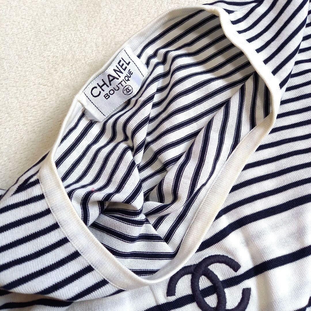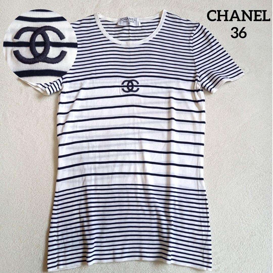 CHANEL シャネル コットン 半袖シャツ カットソー ボーダー 刺繍ココマーク